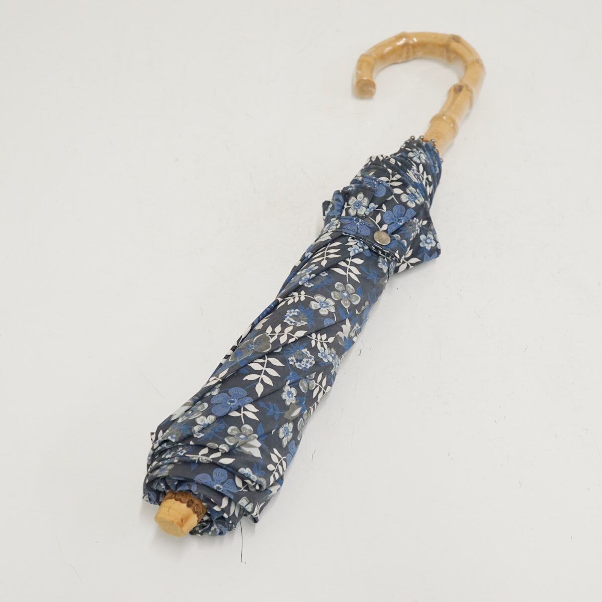 折りたたみ日傘 MINATONO TENRANKAI みなとのてんらんかい USED超美品 フラワー 花柄 ブルー系 竹手元 50cm FS9356