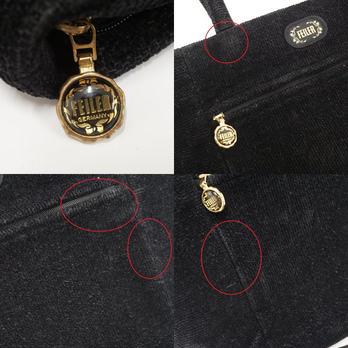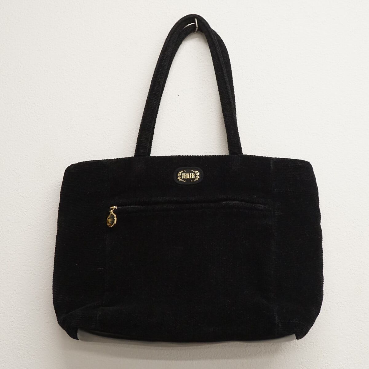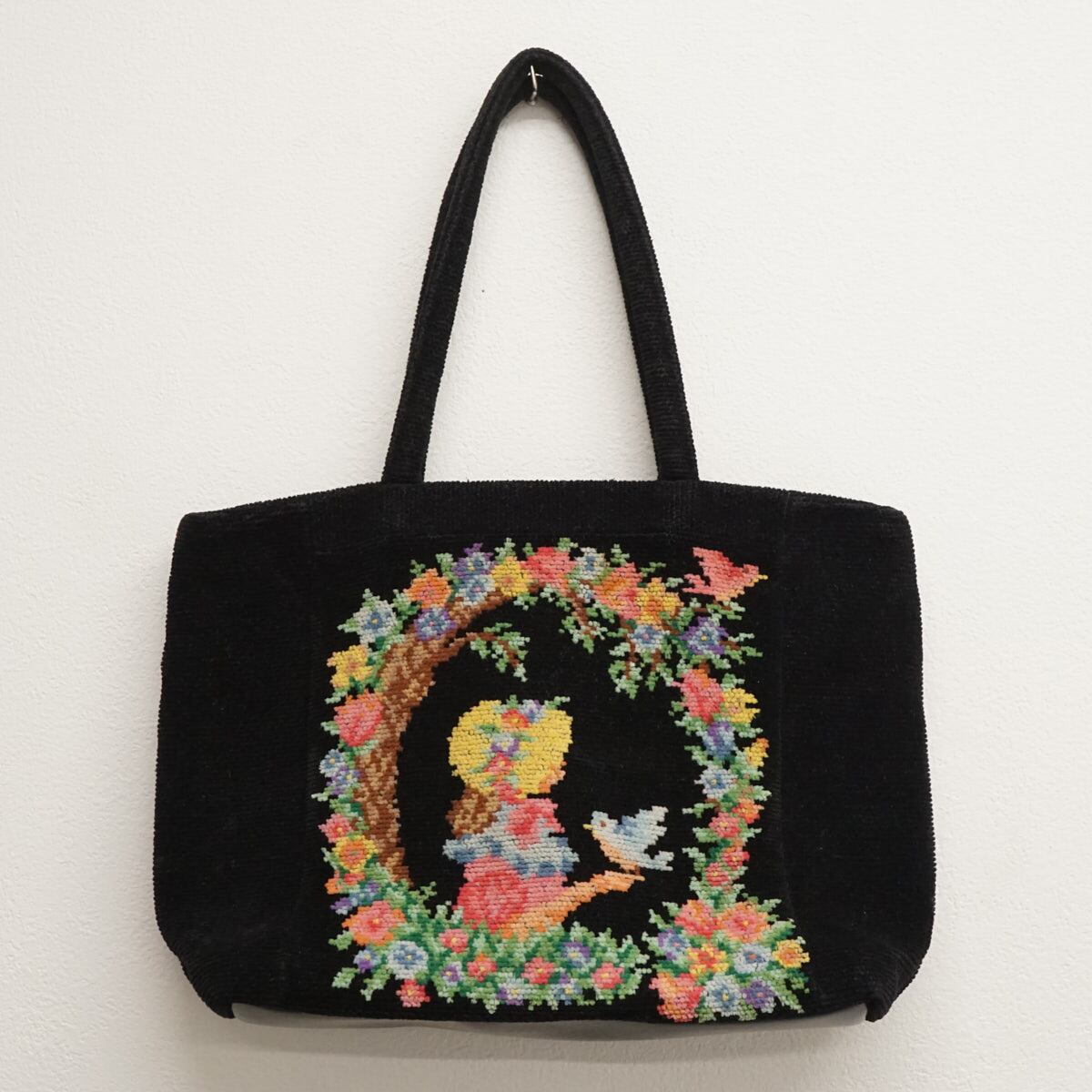 FEILER フェイラー ハンドバッグ 女の子 小鳥 青い鳥 花 ブランド レディース USED美品 ブラック X7516