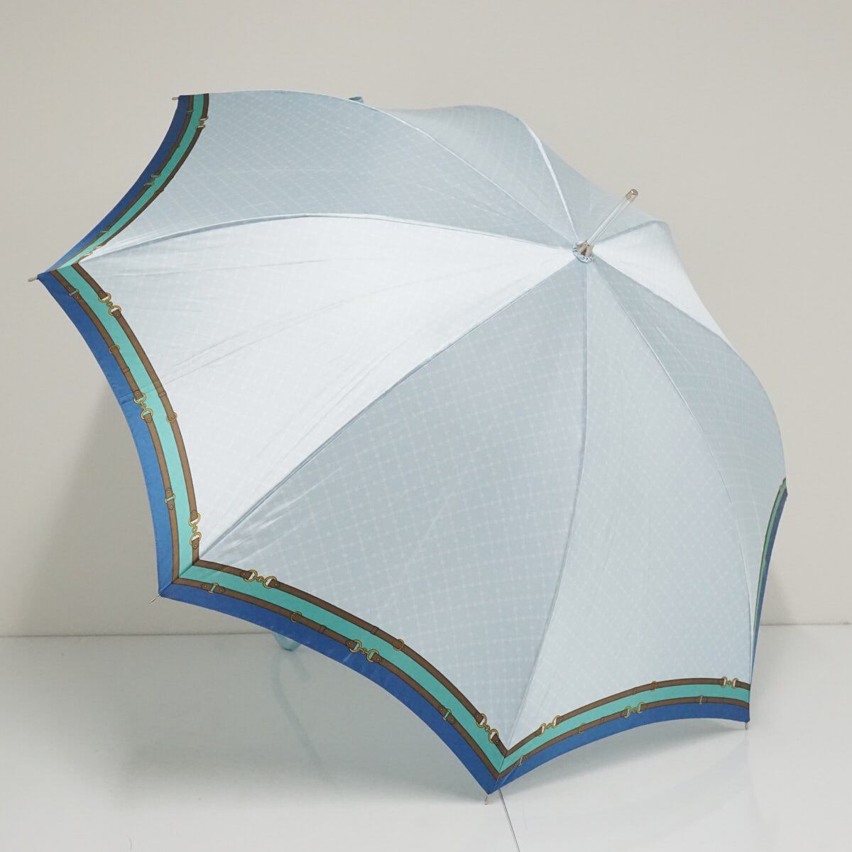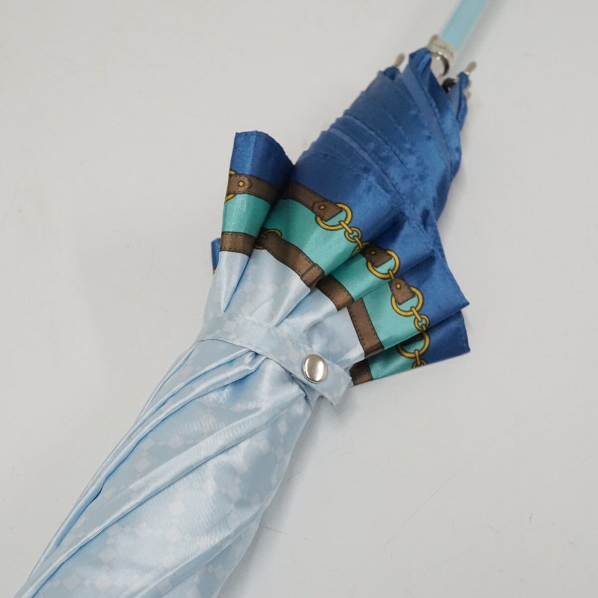 耐風傘 PINKY&DIANNE ピンキーアンドダイアン USED美品 ベルト ジャンプ ブルー系 ブランド グラス骨 60cm A3187