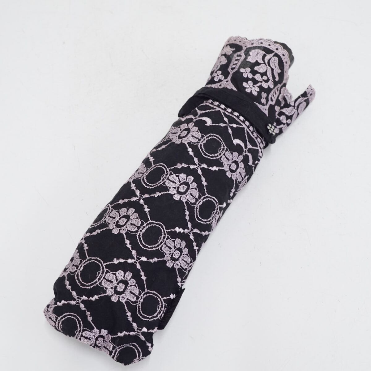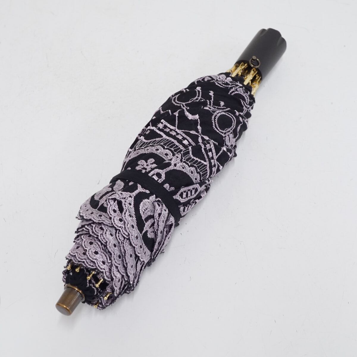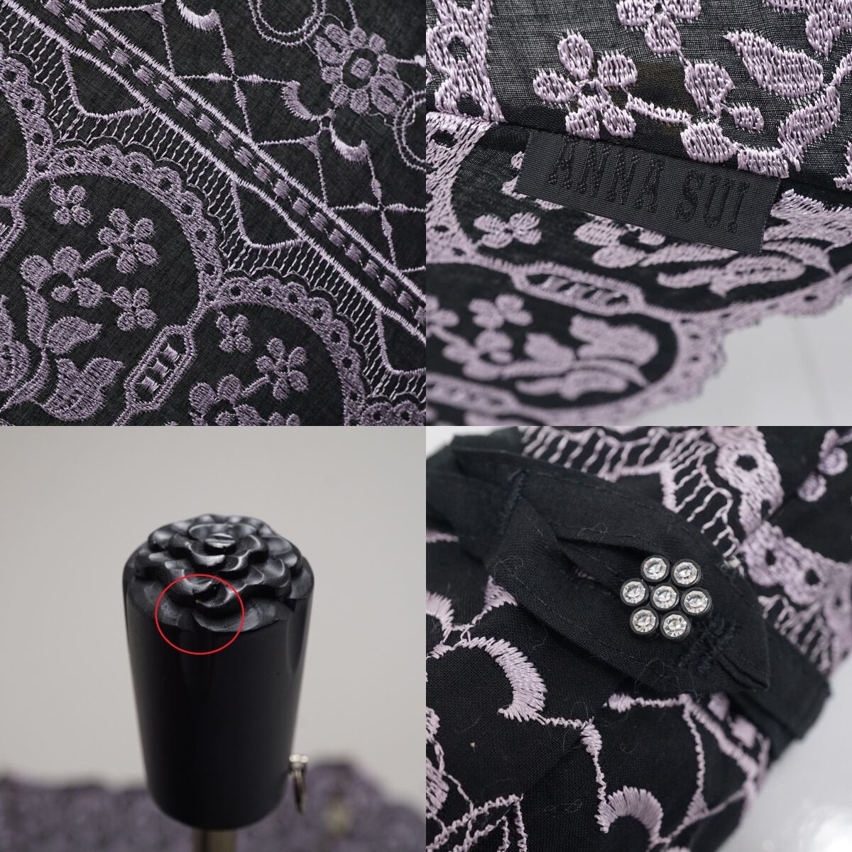 日傘 ANNA SUI アナスイ USED美品 ブラック フラワー 刺繍 木製手元 ブランド 紫外線対策 47cm FS9374