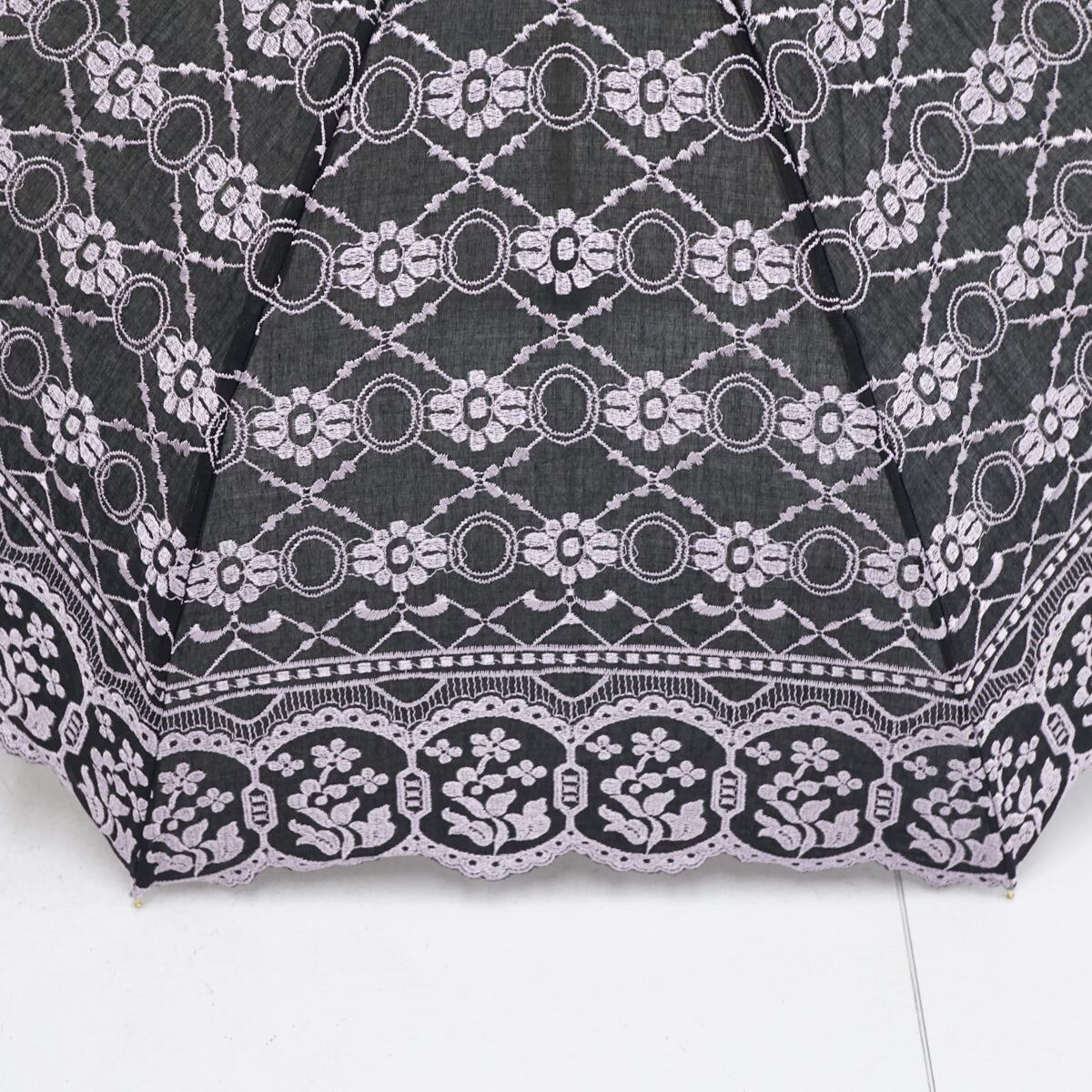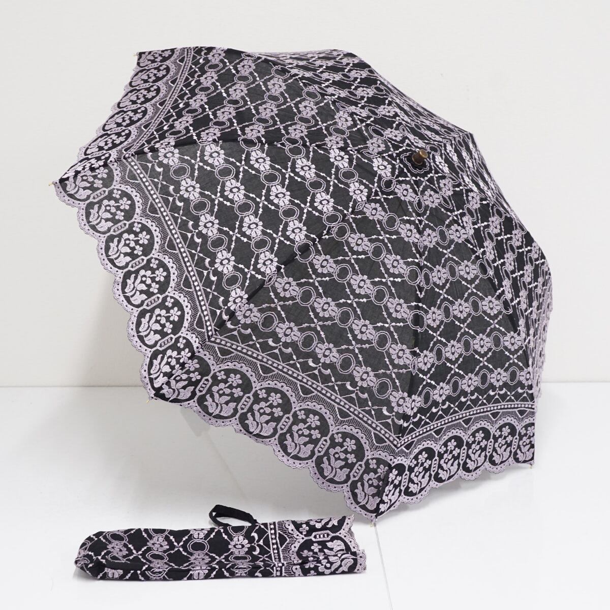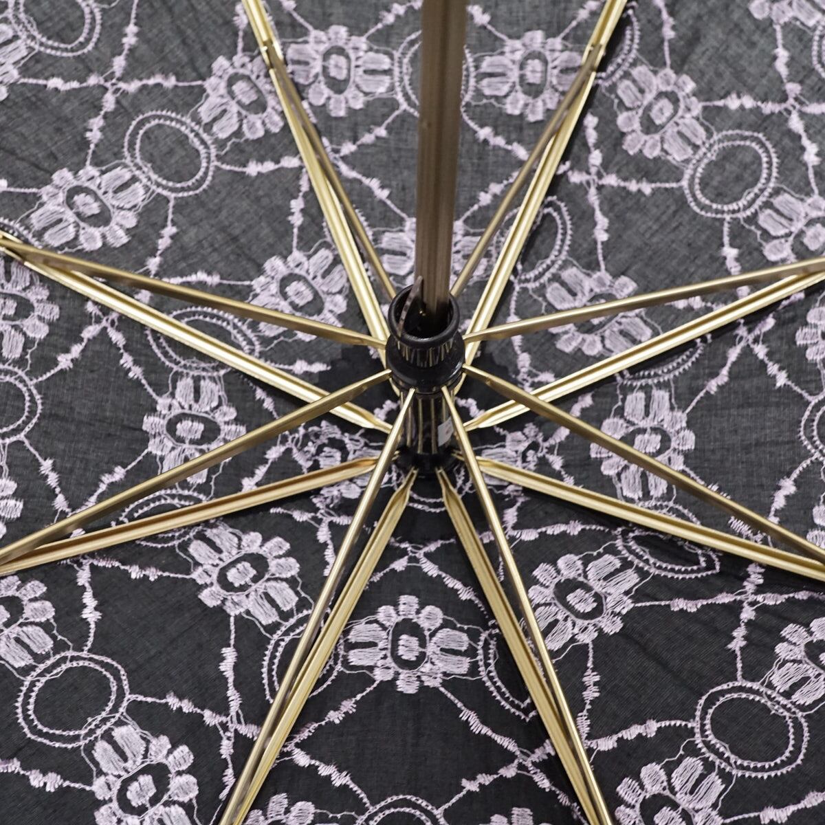 日傘 ANNA SUI アナスイ USED美品 ブラック フラワー 刺繍 木製手元 ブランド 紫外線対策 47cm FS9374