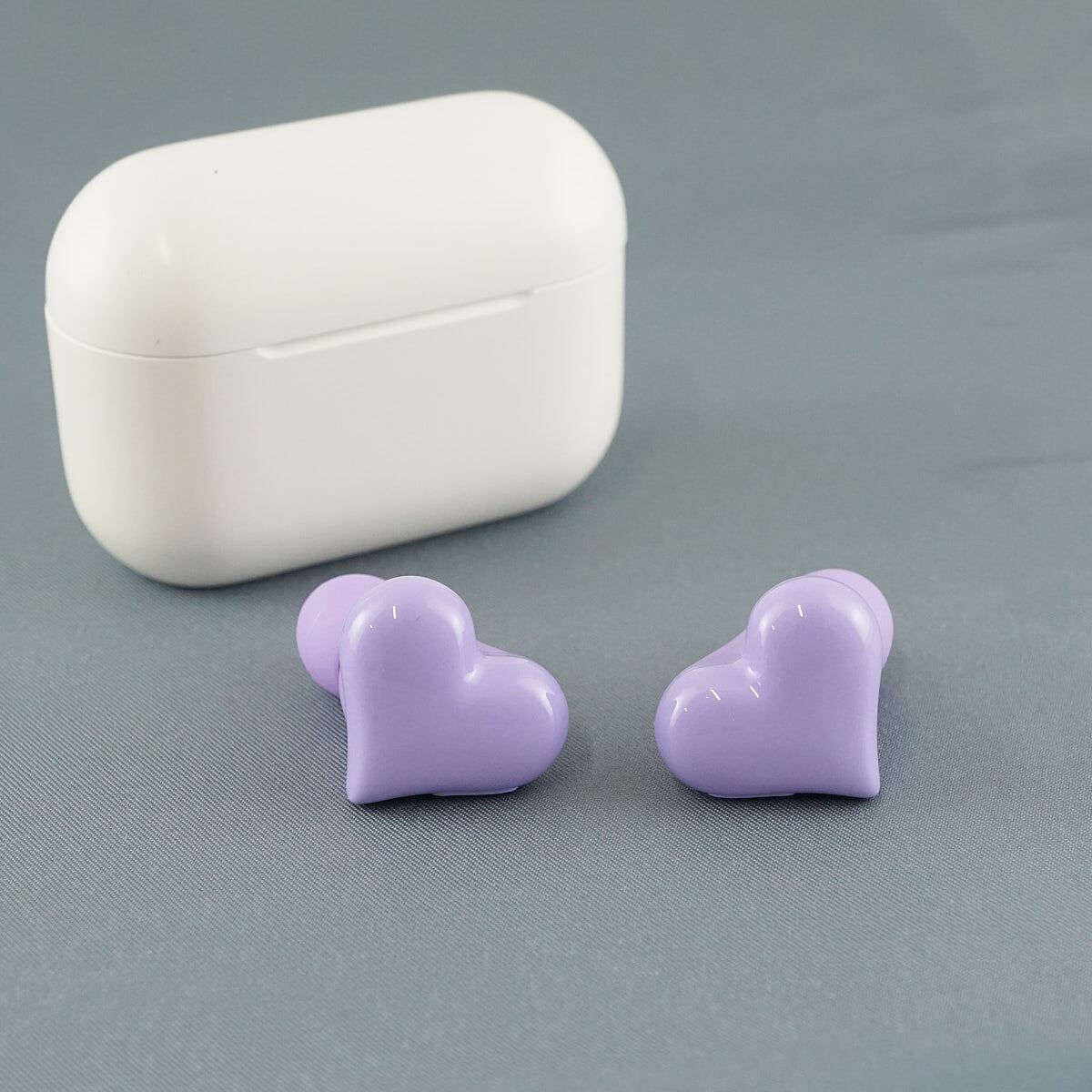 HeartBuds 完全ワイヤレスイヤホン USED美品 外音取込 マイク 防滴 IPX4 かわいい ハートデザイン パープル 完動品 V1787