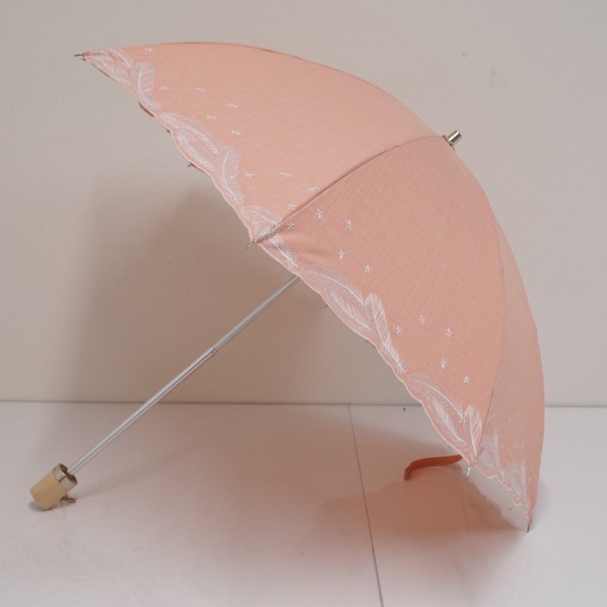 晴雨兼用雨傘 onouchi Kyoto 小野内商店 USED美品 hane pink×ice white 限定品 サーモンピンク 羽根 47cm FS9375