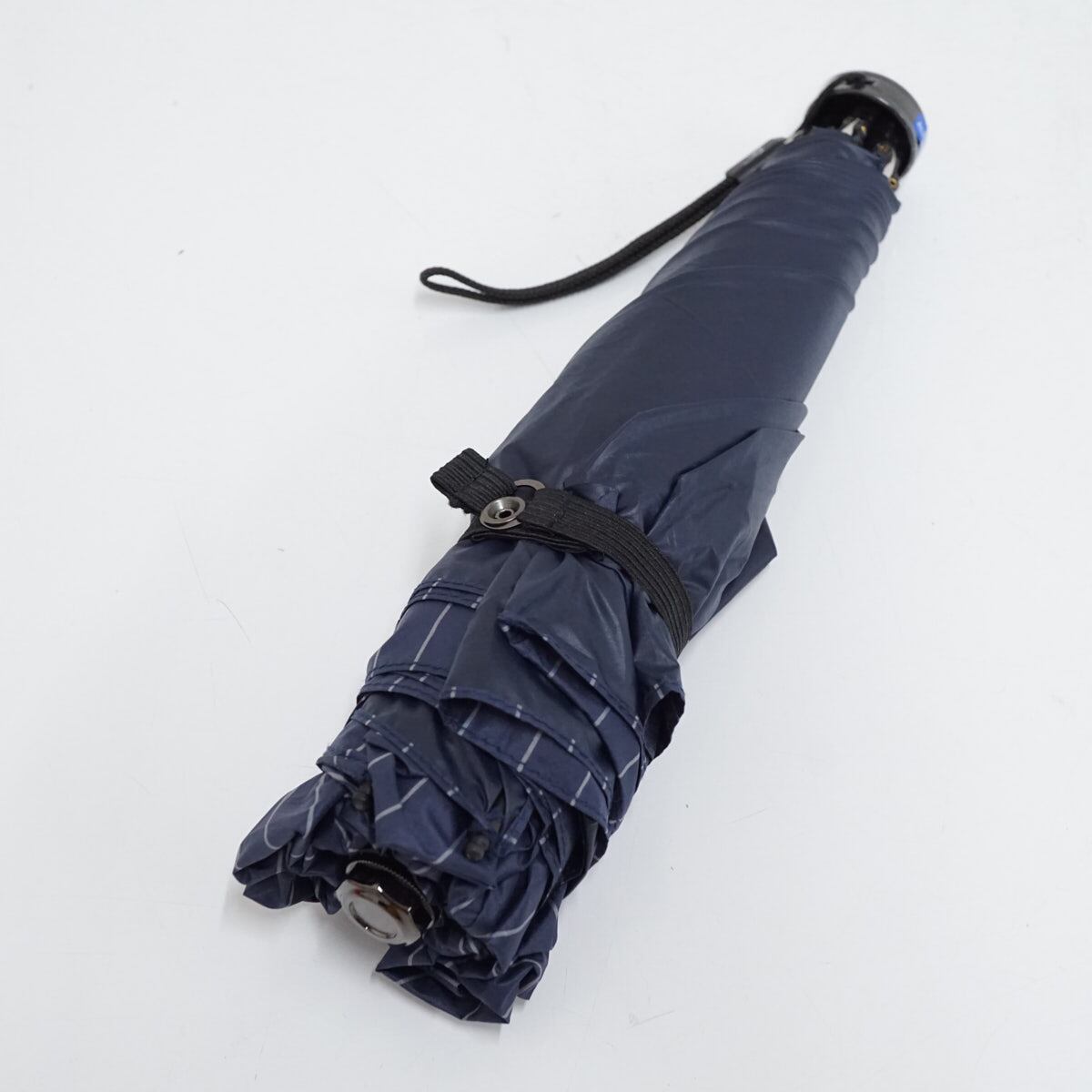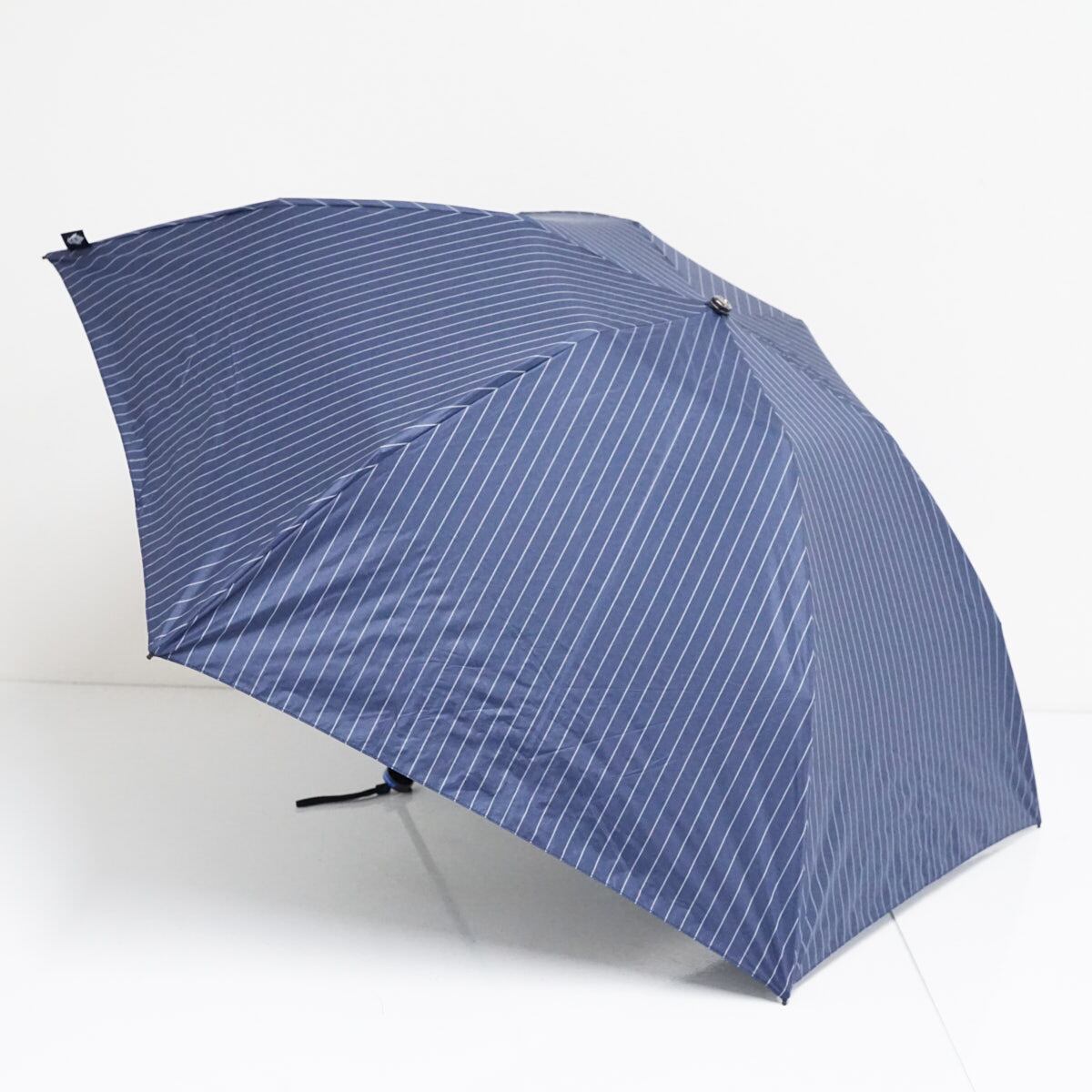 折りたたみ日傘 Blao ブラオ USED美品 晴雨兼用 ストライプ ネイビー 遮光 遮熱 UV 軽量 コンパクト 55cm FS9384