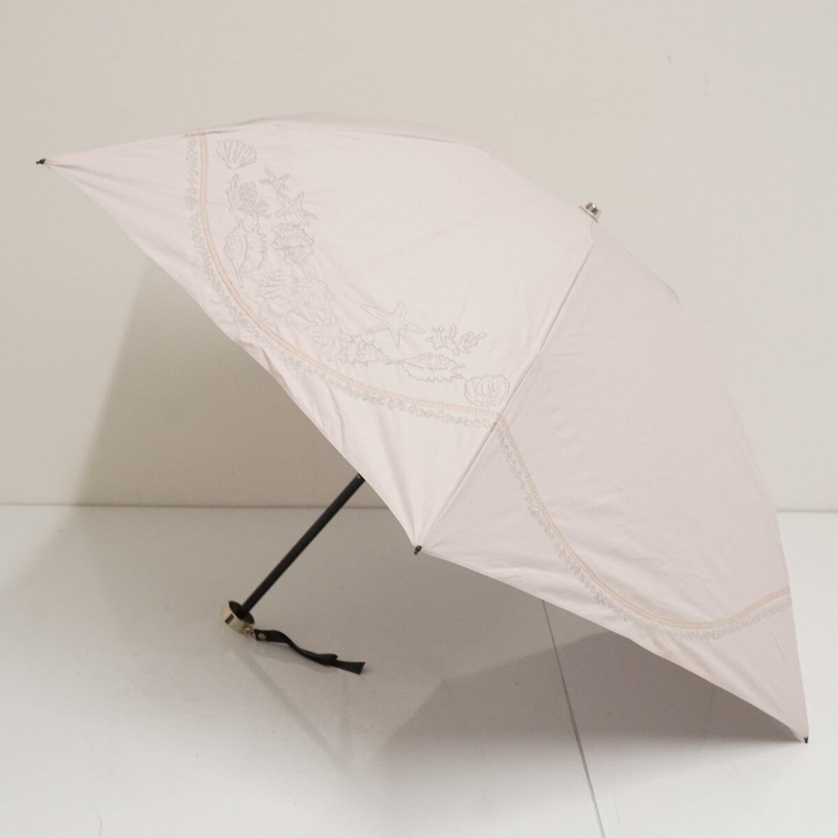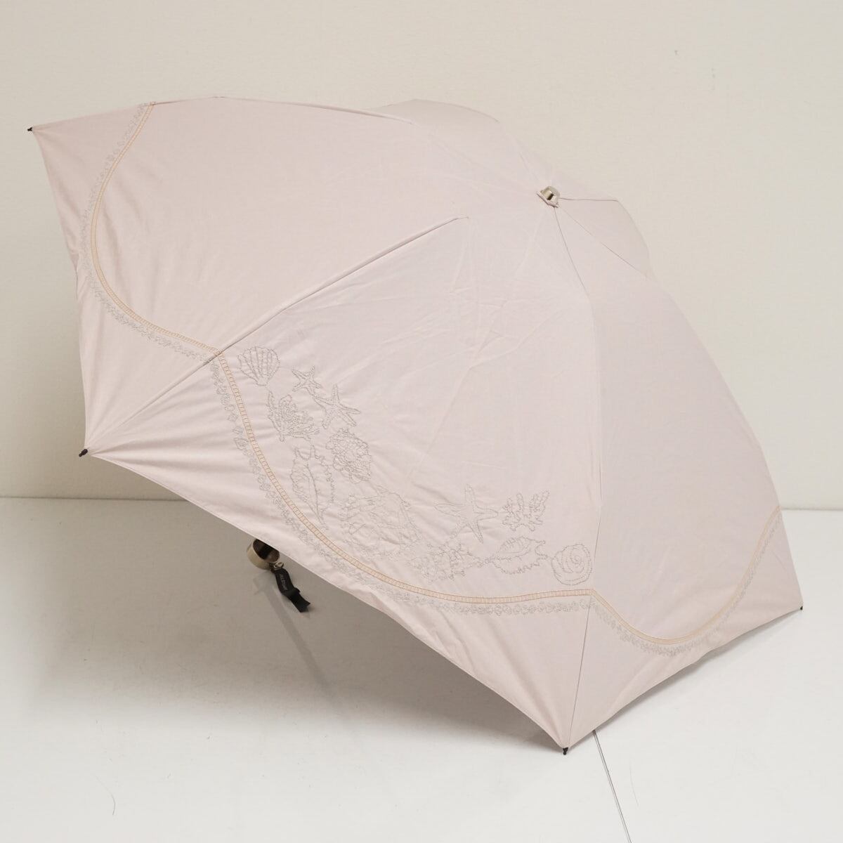折りたたみ日傘 JILL STUART ジルスチュアート USED品 シェル 貝殻 刺繍 遮光 ピンク UV 50cm FA9389