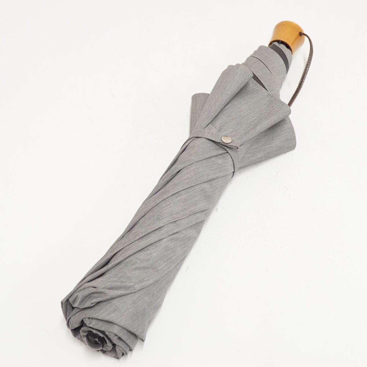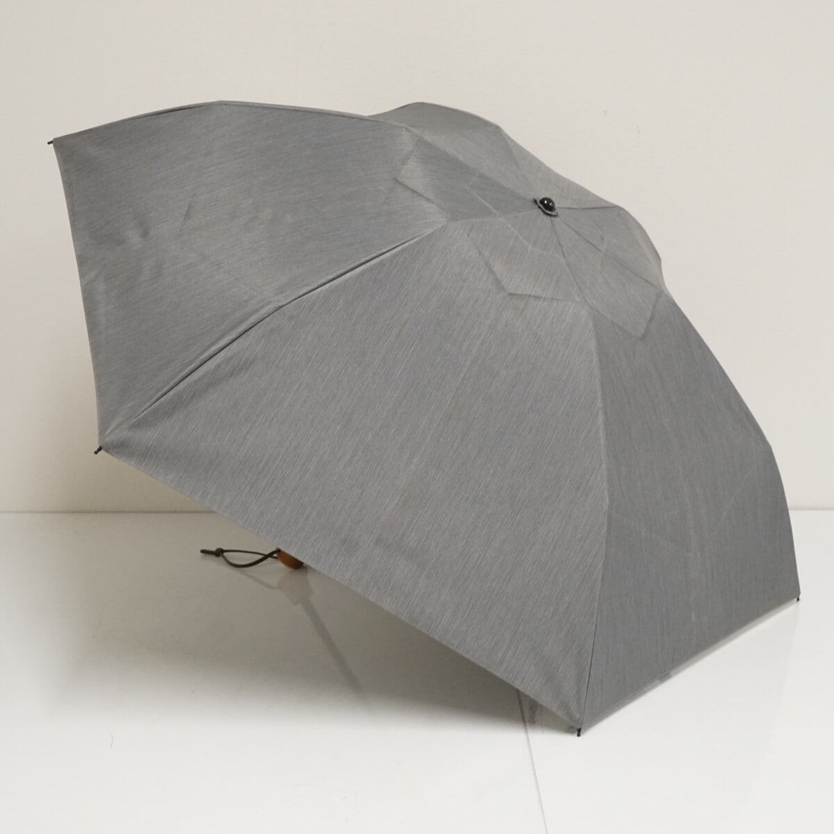 こちらは畳むとコンパクトなサイズになる3段折タイプで、シャンブレー風のグレーの生地を使用した落ち着いたデザインです。