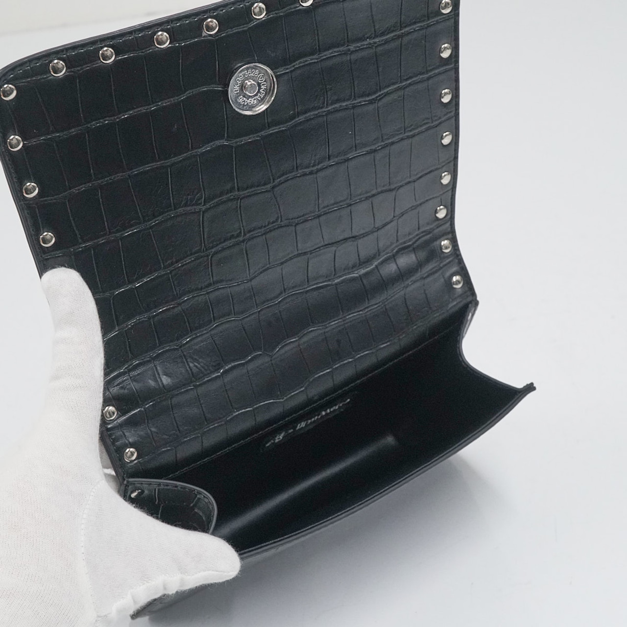 Dimmoire ディムモアール ショルダーバッグ USED美品 クロコダイル風 ハート チェーン スタッズ ハート ブラック ファッション X7629