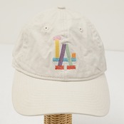 NEW ERA 9FORTY BTS MLB Dynamite ロサンゼルス・ドジャース ストーン コラボ ニューエラ キャップ USED美品 帽子 ベージュ 刺繍 カラフル X7617