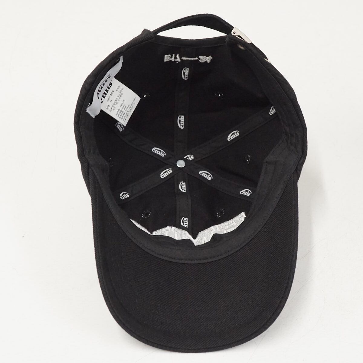 韓国のブランド「emis」のロゴ刺繍入りキャップです。