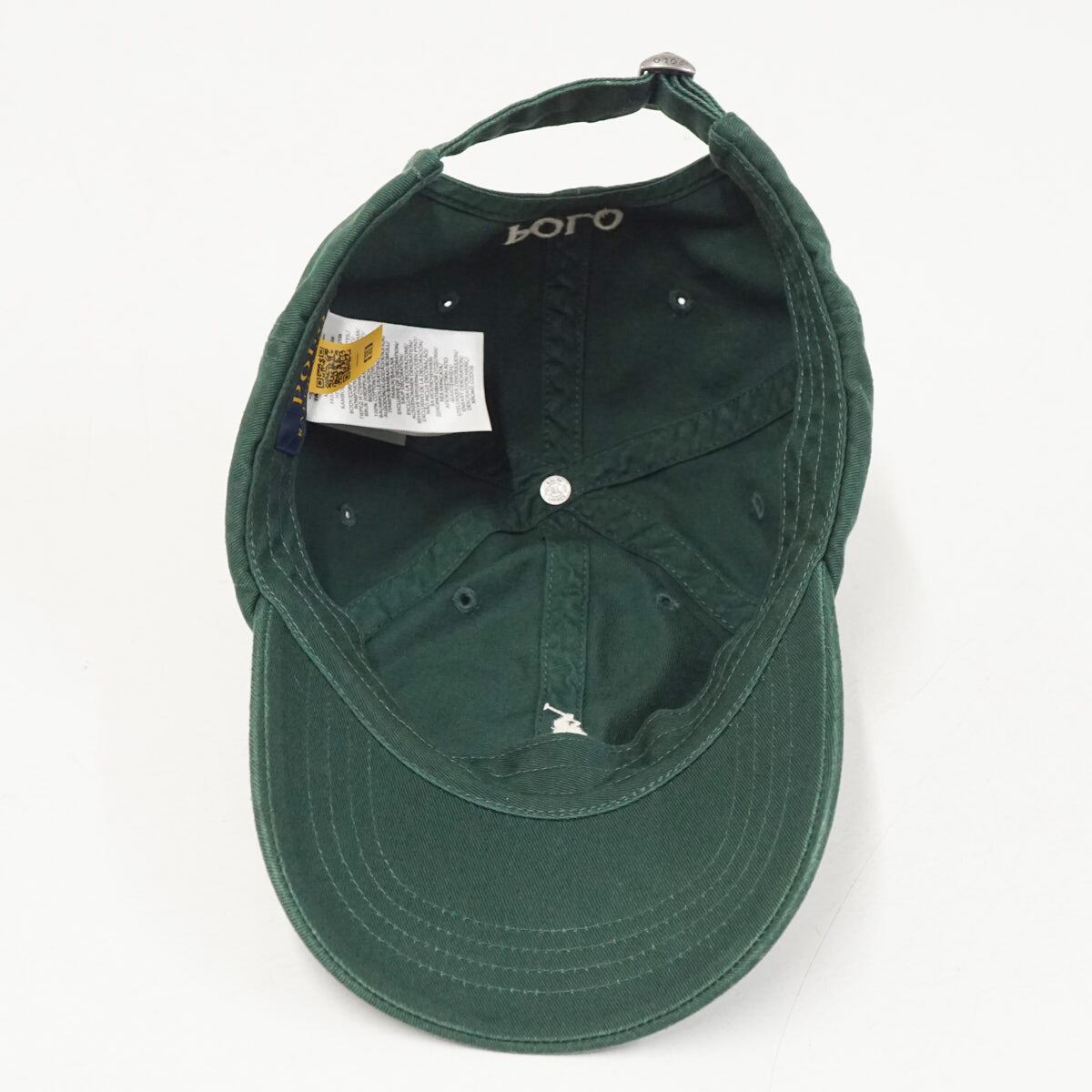 グリーンの生地にホワイトのポロポニーの刺繍がおしゃれなポロラルフローレンのキャップです。