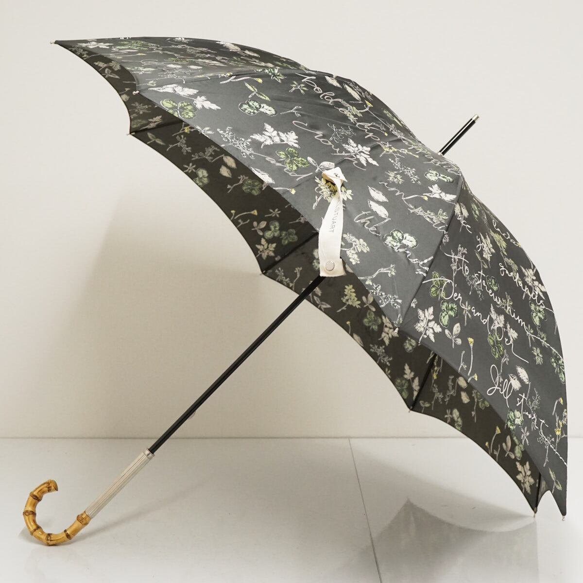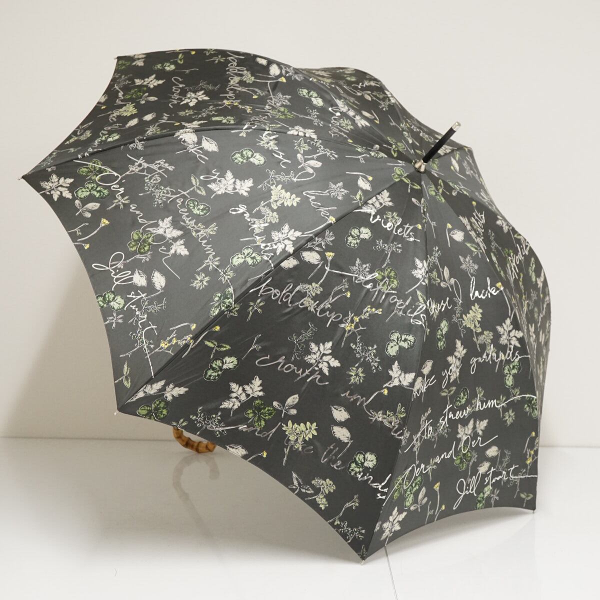傘 JILL STUART ジルスチュアート USED美品 ボタニカル柄 箔プリント 草花 竹手元 グラス骨 60cm S9196
