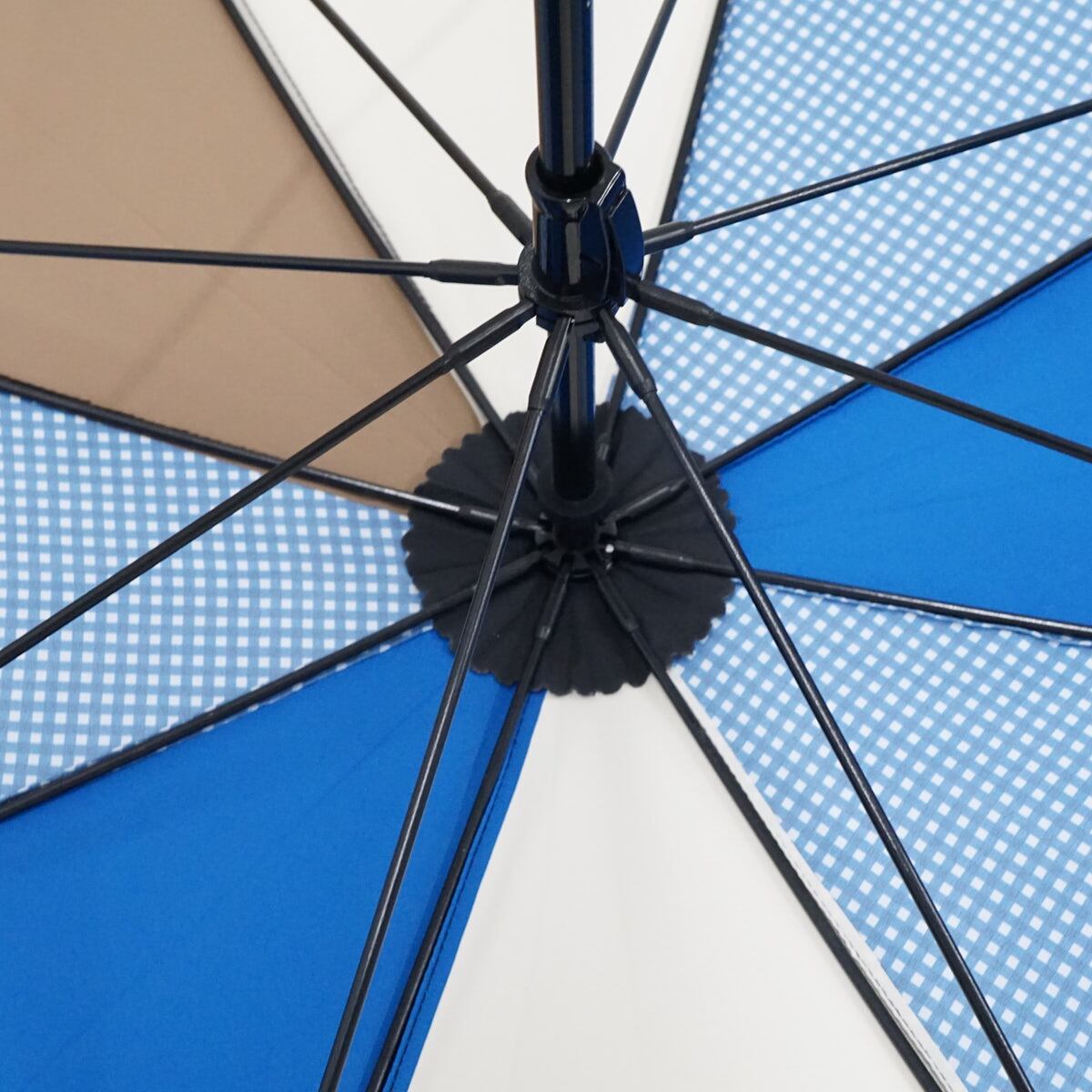 傘の1コマ1コマ異なった色柄のものを組み合わせた張り分けタイプのパターン傘です。