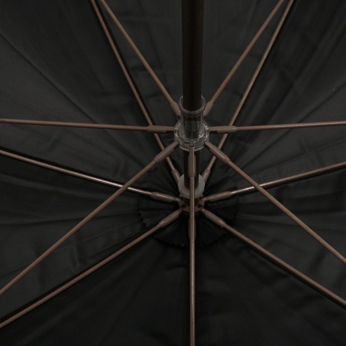 撥水レベル最高級の5級、15mの耐風性カーボン骨使用の雨傘機能、