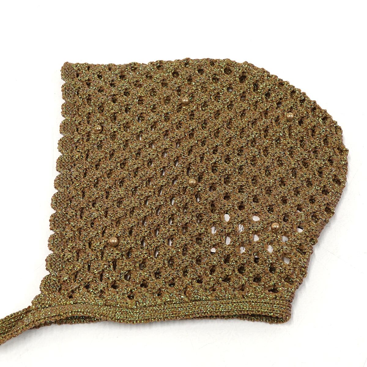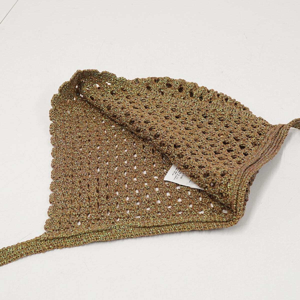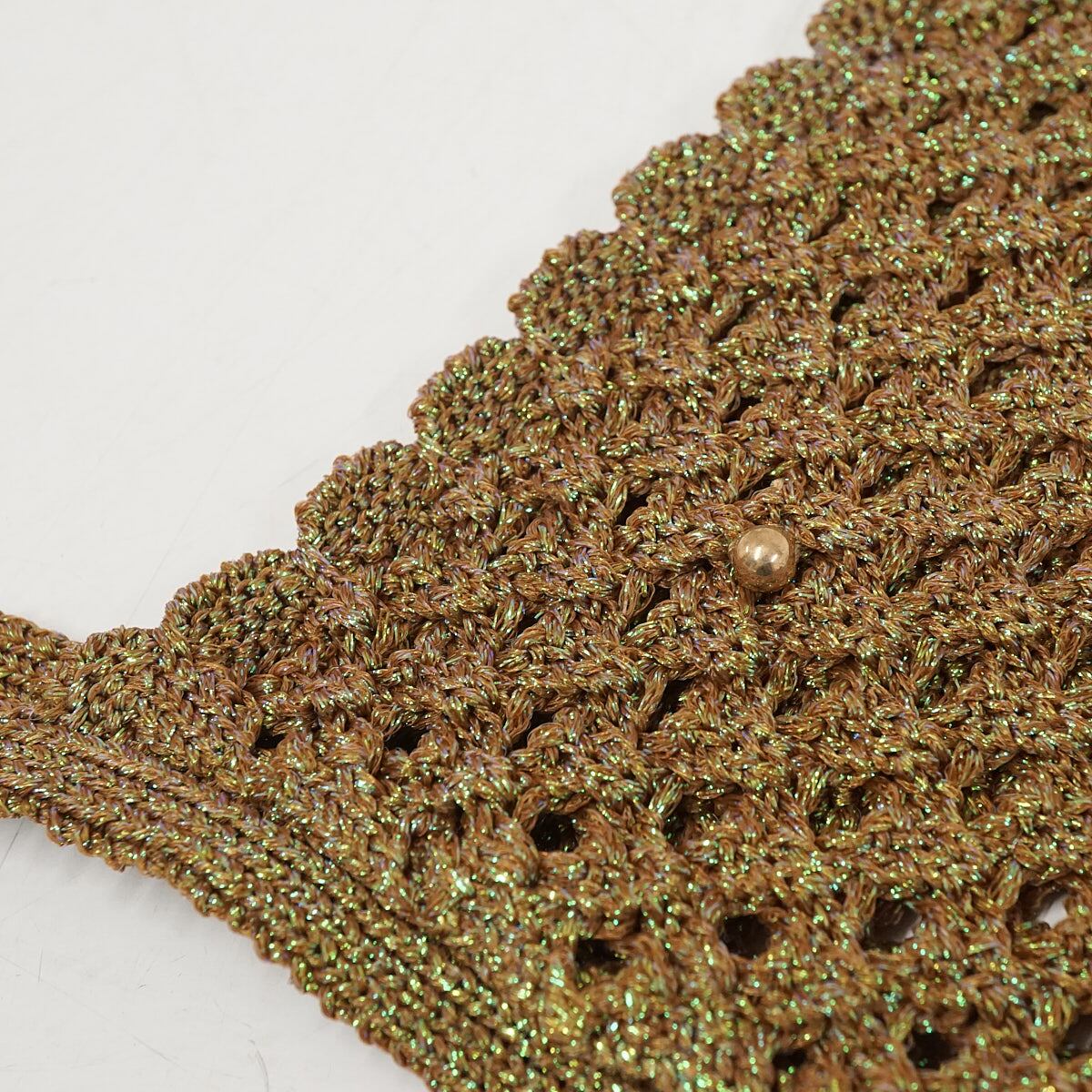 LILY BROWN リリーブラウン クロシェボンネット USED美品 KKI クロシェ編み ビーズ カーキ ラメ レトロ フリーサイズ X7736