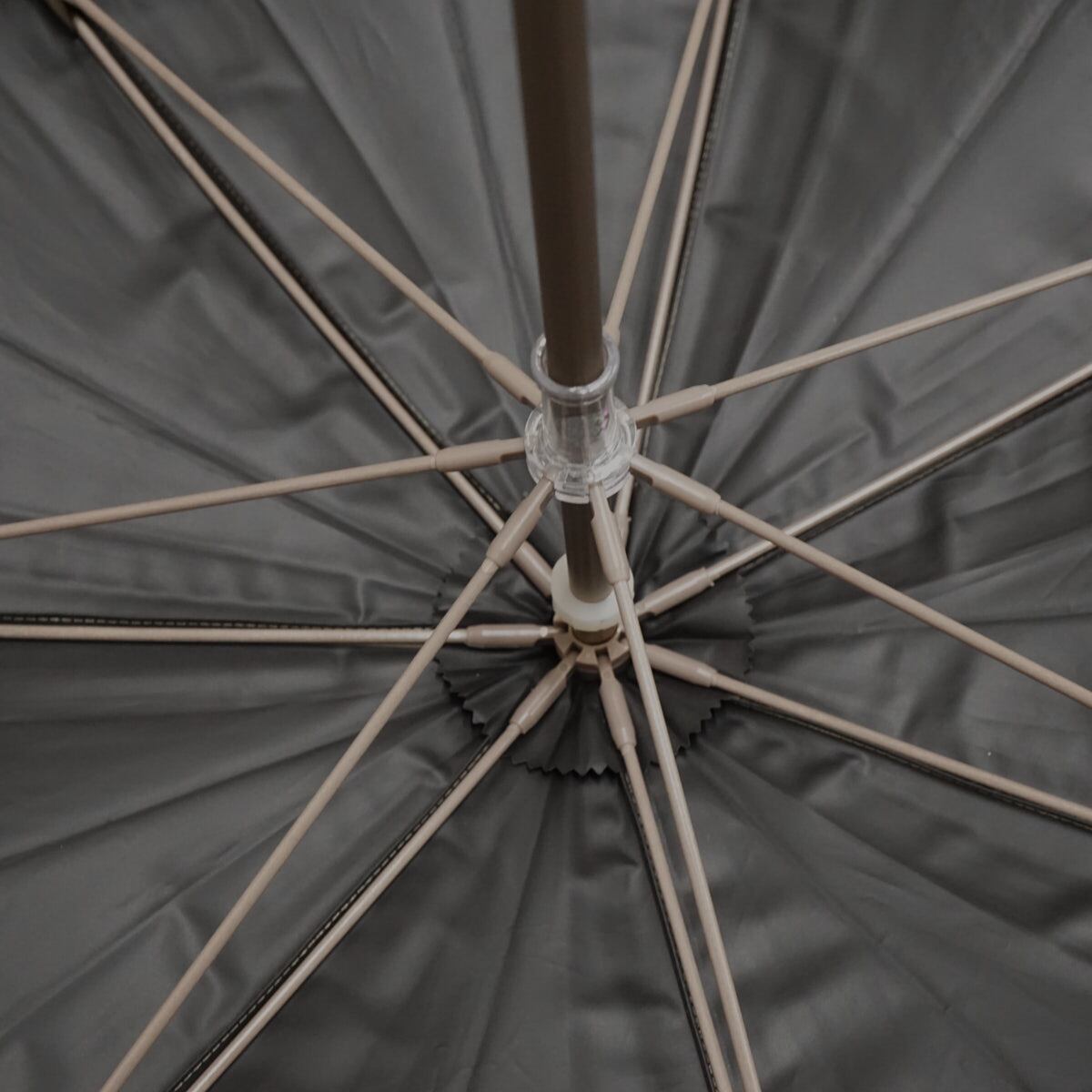 持つだけでコーディネートがワンランク上がるような、美しいカラーと木目調の手元が魅力の長傘。