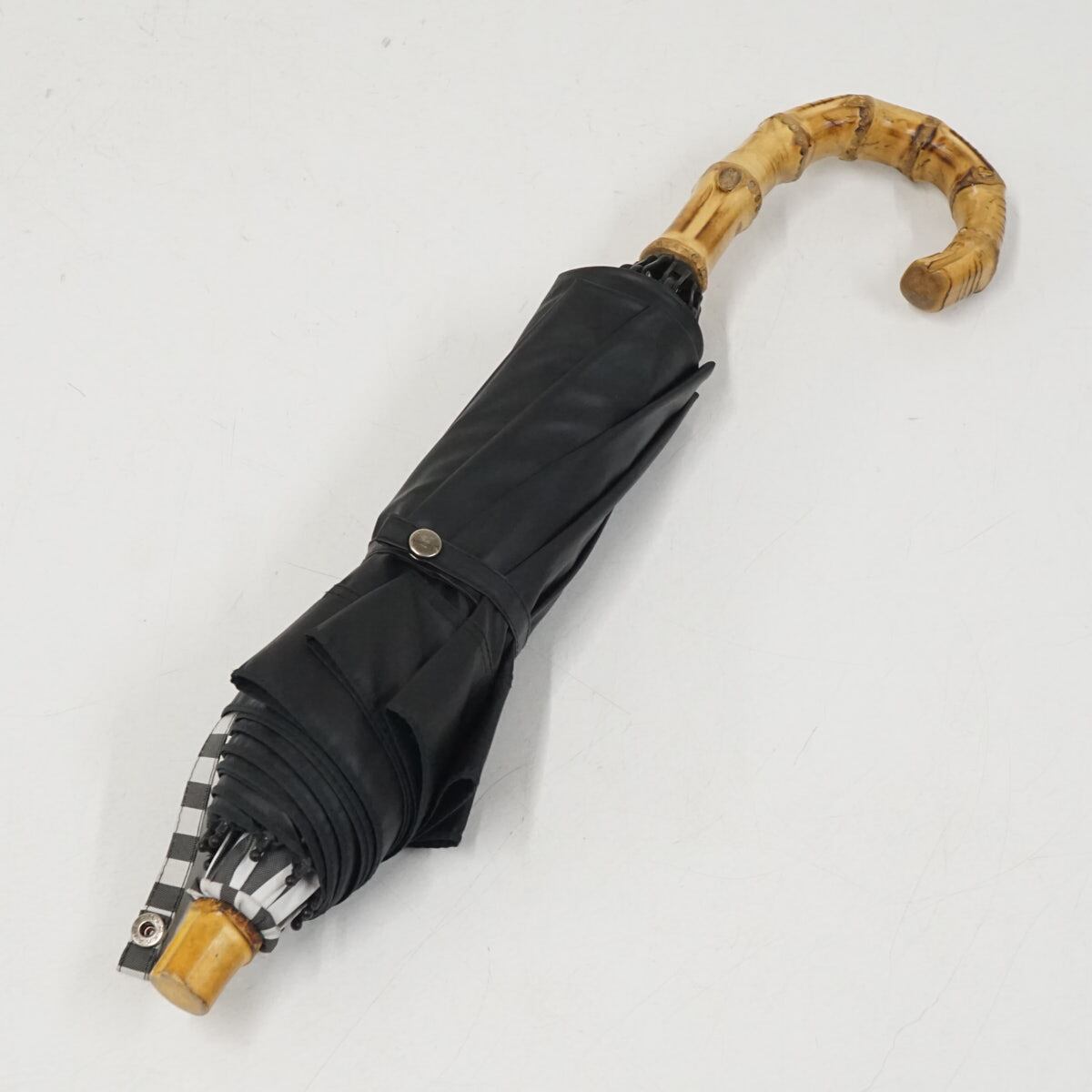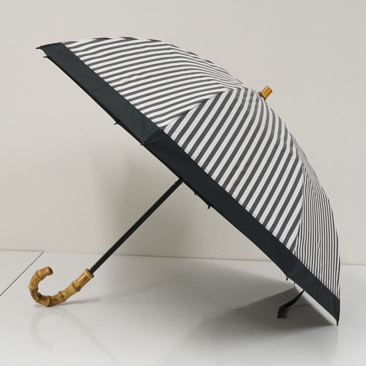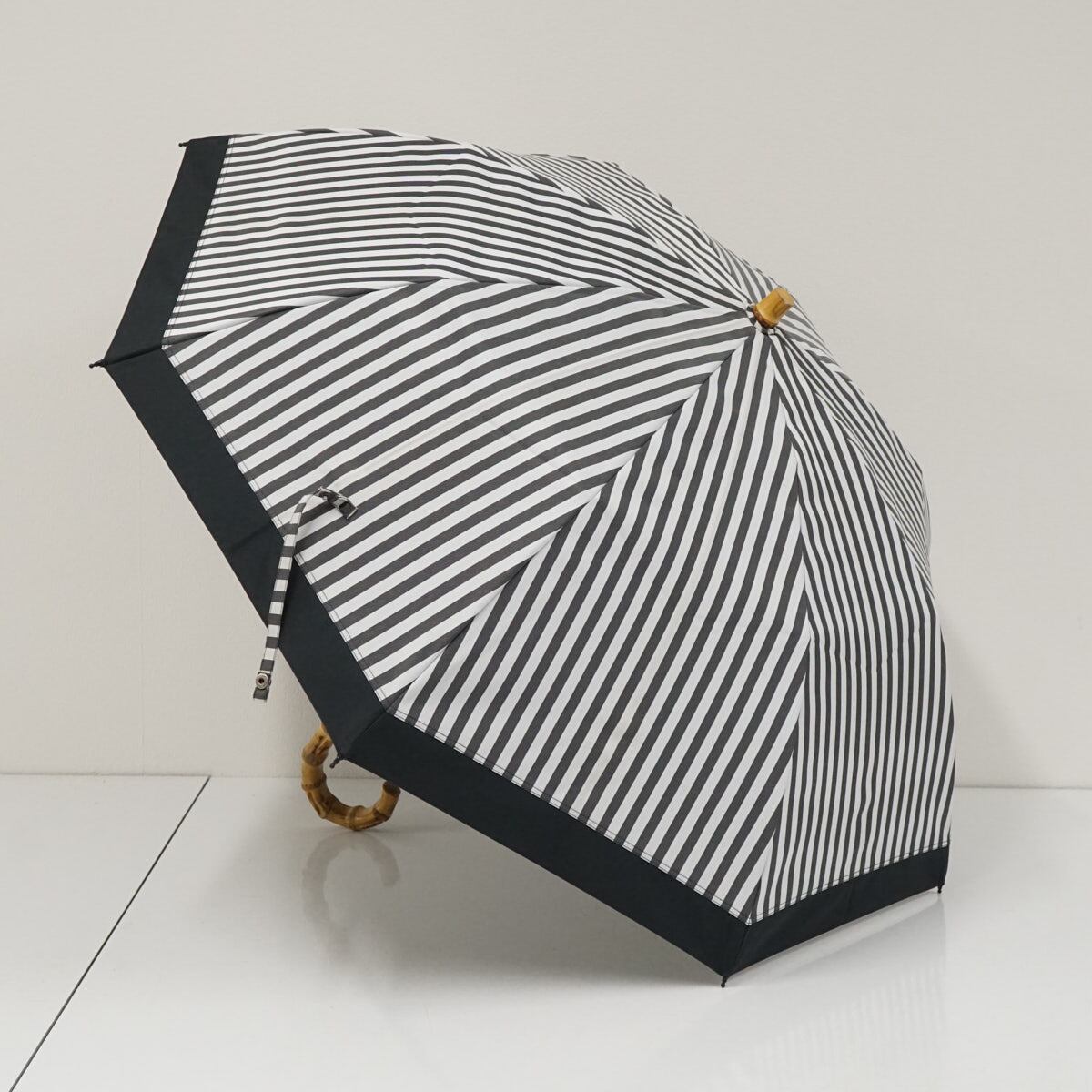 サンバリア100 完全遮光折日傘 USED美品 2段折 コンビ 白黒ストライプ 寒竹手元 UVカット 遮熱 折りたたみ 50cm FS9410