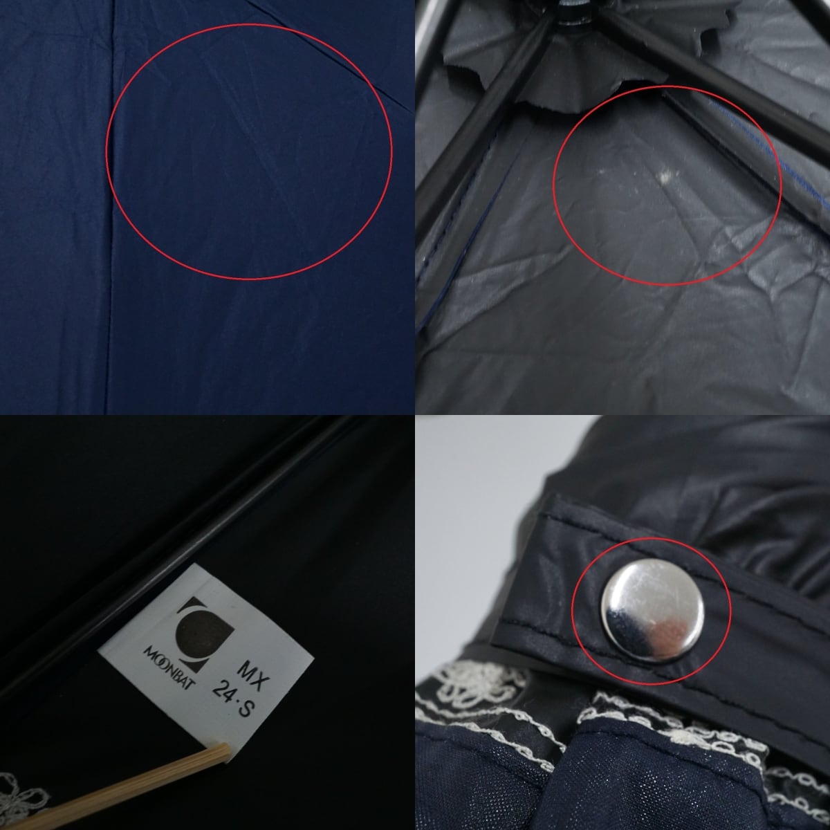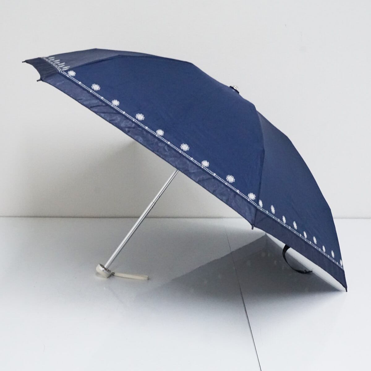 折りたたみ日傘 MOONBAT ムーンバット USED美品 晴雨兼用 フラワー 刺繍 ネイビー 50cm FA9408