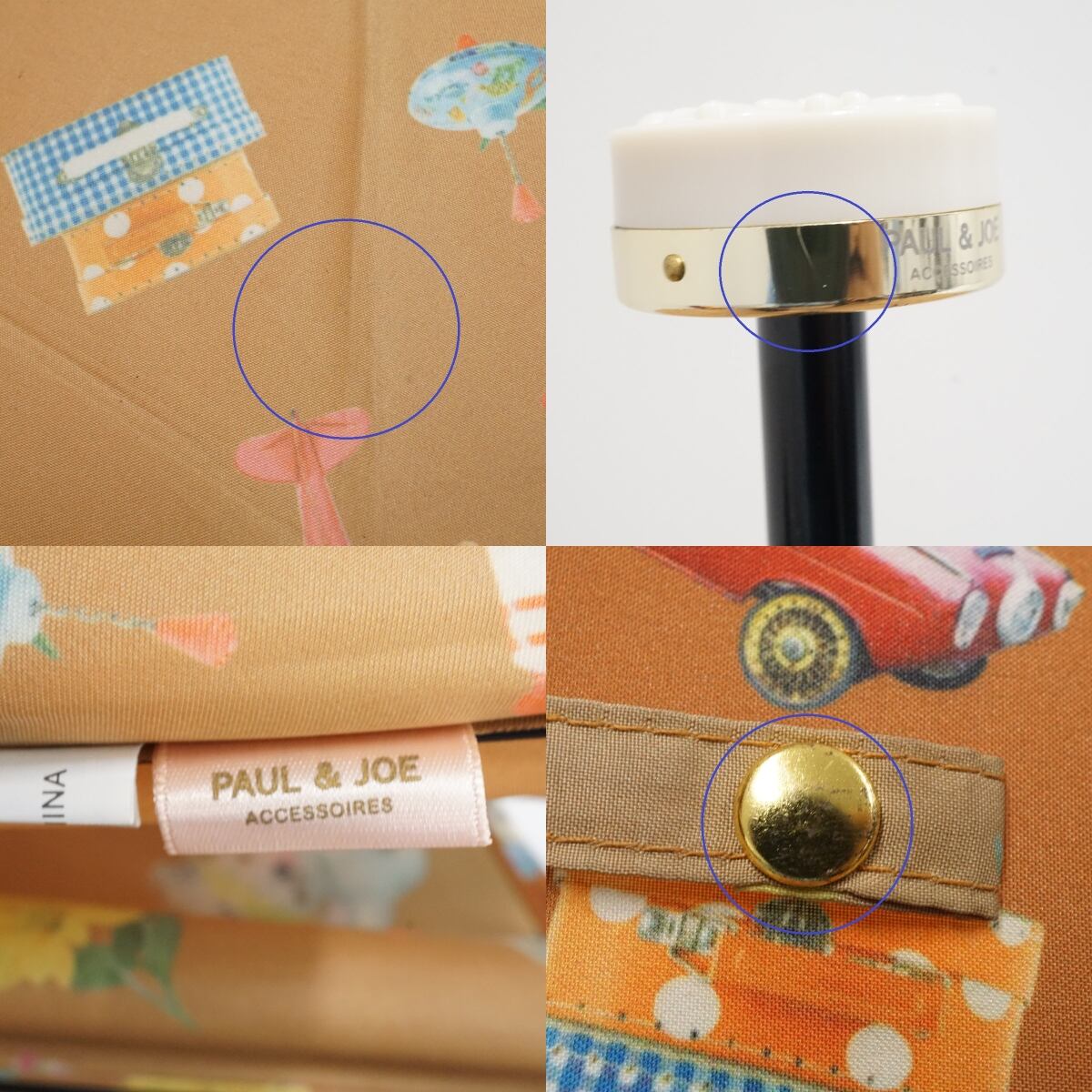 折りたたみ傘 PAUL&JOE ACCESSOIRES ポールアンドジョー アクセソワ USED品 フォトプリント ねこ ぬいぐるみ おもちゃ 55cm FA9409