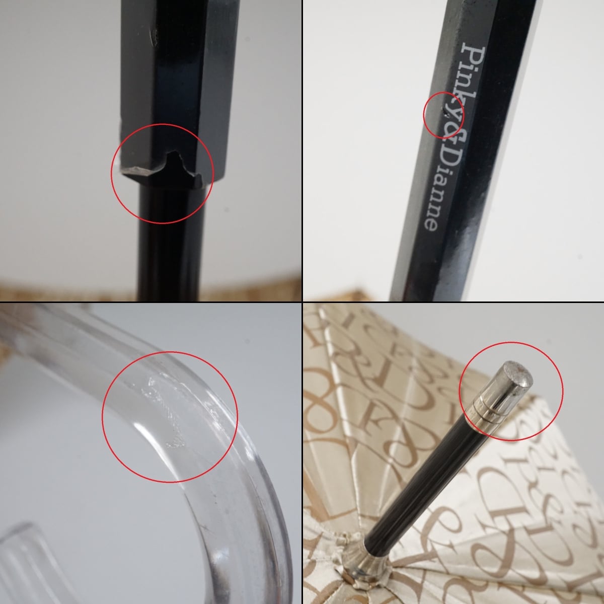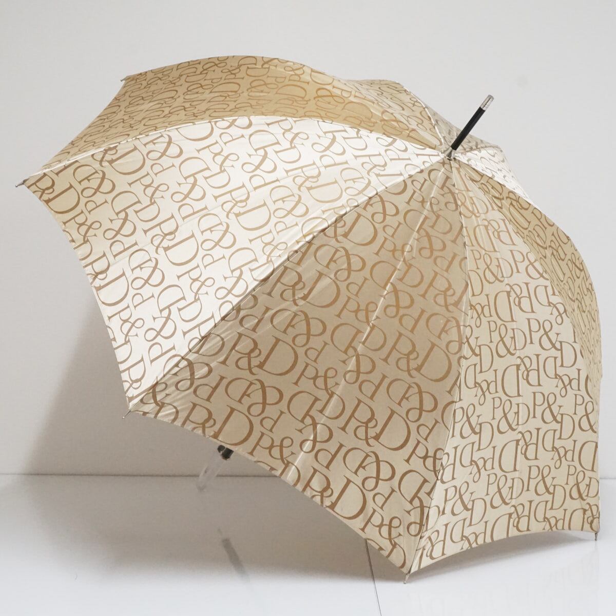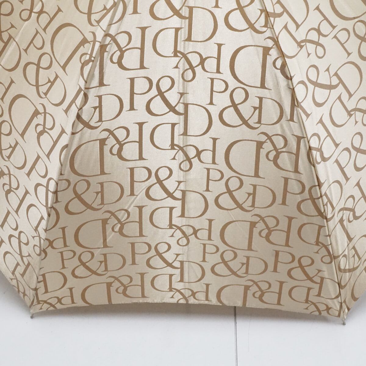 傘 Pinky&Dianne ピンキー&ダイアン USED美品 ブランド ロゴ ジャガード クリア手元 ベージュ系 60cm A3224