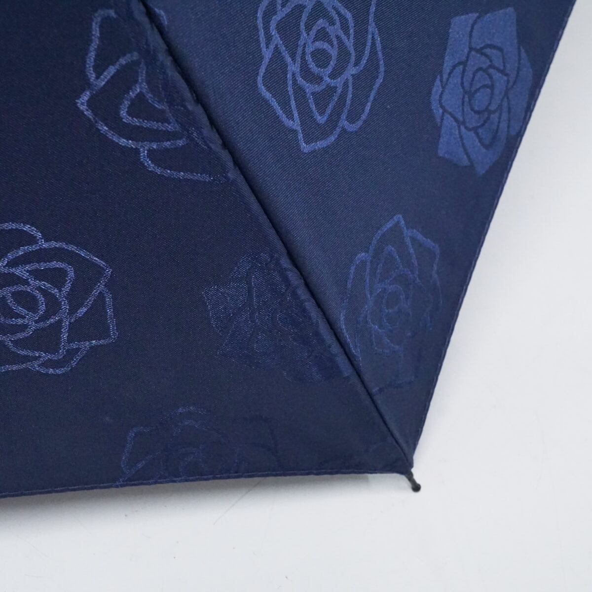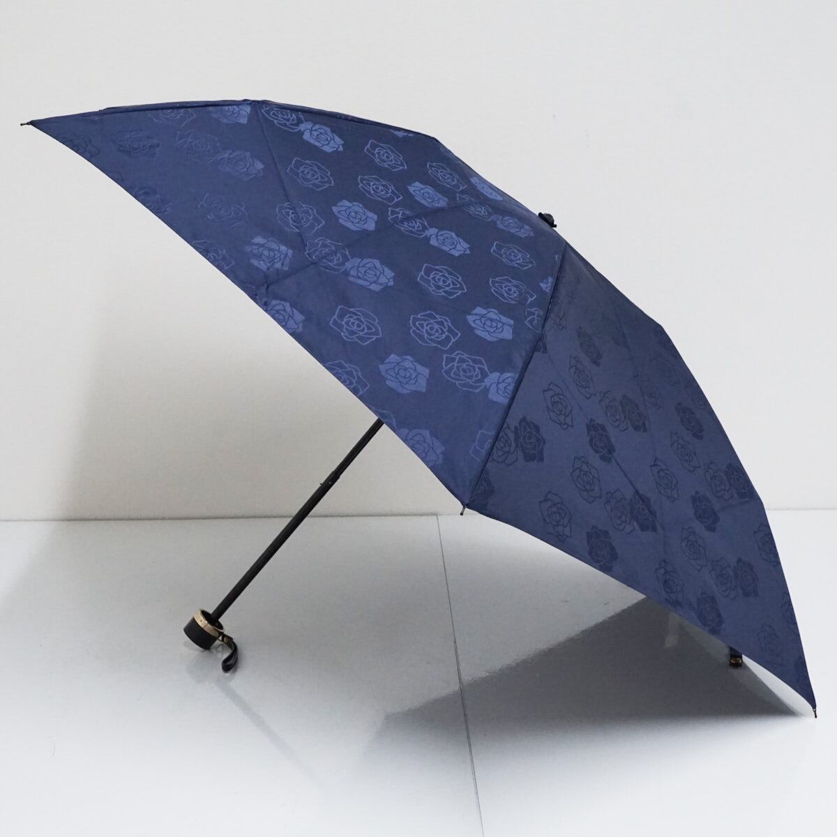 折りたたみ傘 mila schon ミラショーン USED品 フラワー 薔薇 ネイビー ジャガード 折傘 55cm FA9420