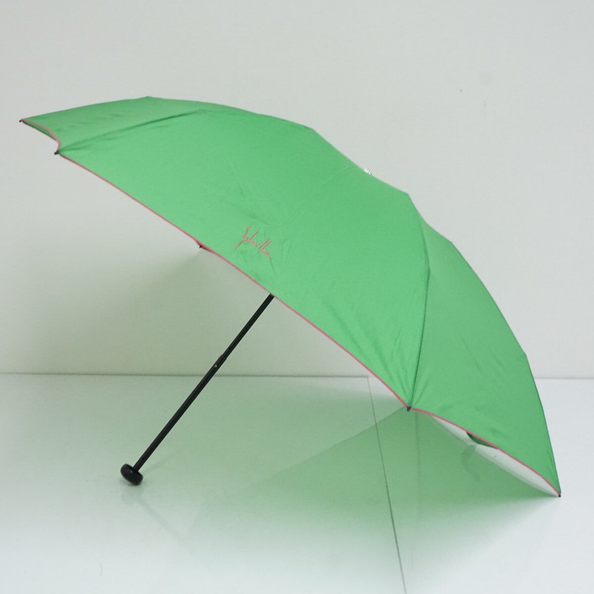 折りたたみ傘 Sybilla シビラ USED美品 シンプル ロゴ刺繍 グリーン 軽量 ブランド 55cm FA9422