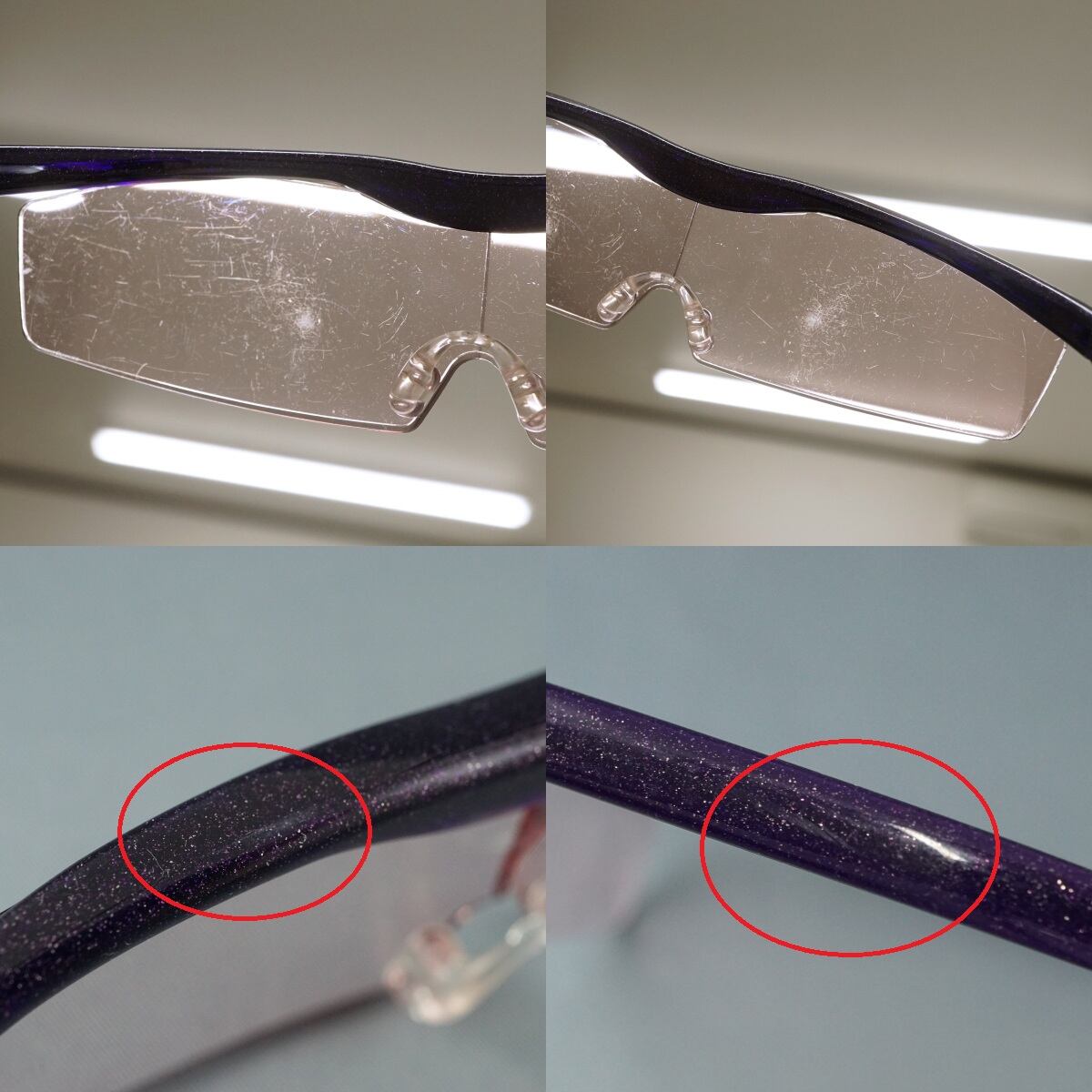 ※レンズにスレ、小キズがかなりあります。(一部を画像にてご確認ください。視界に若干入り込みますが、視認性にはあまり影響ございません。)