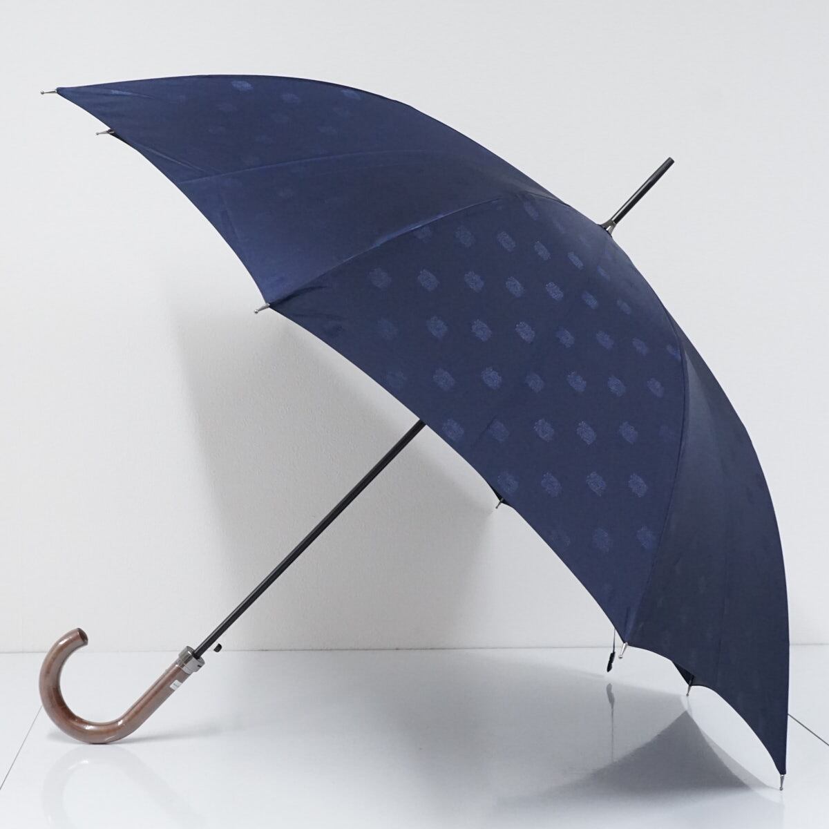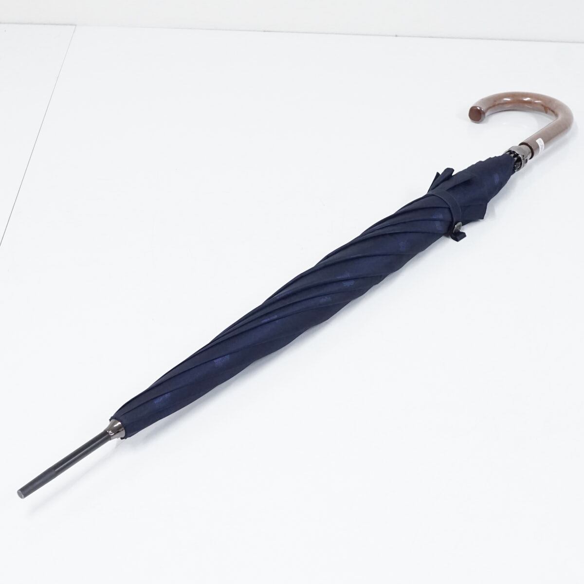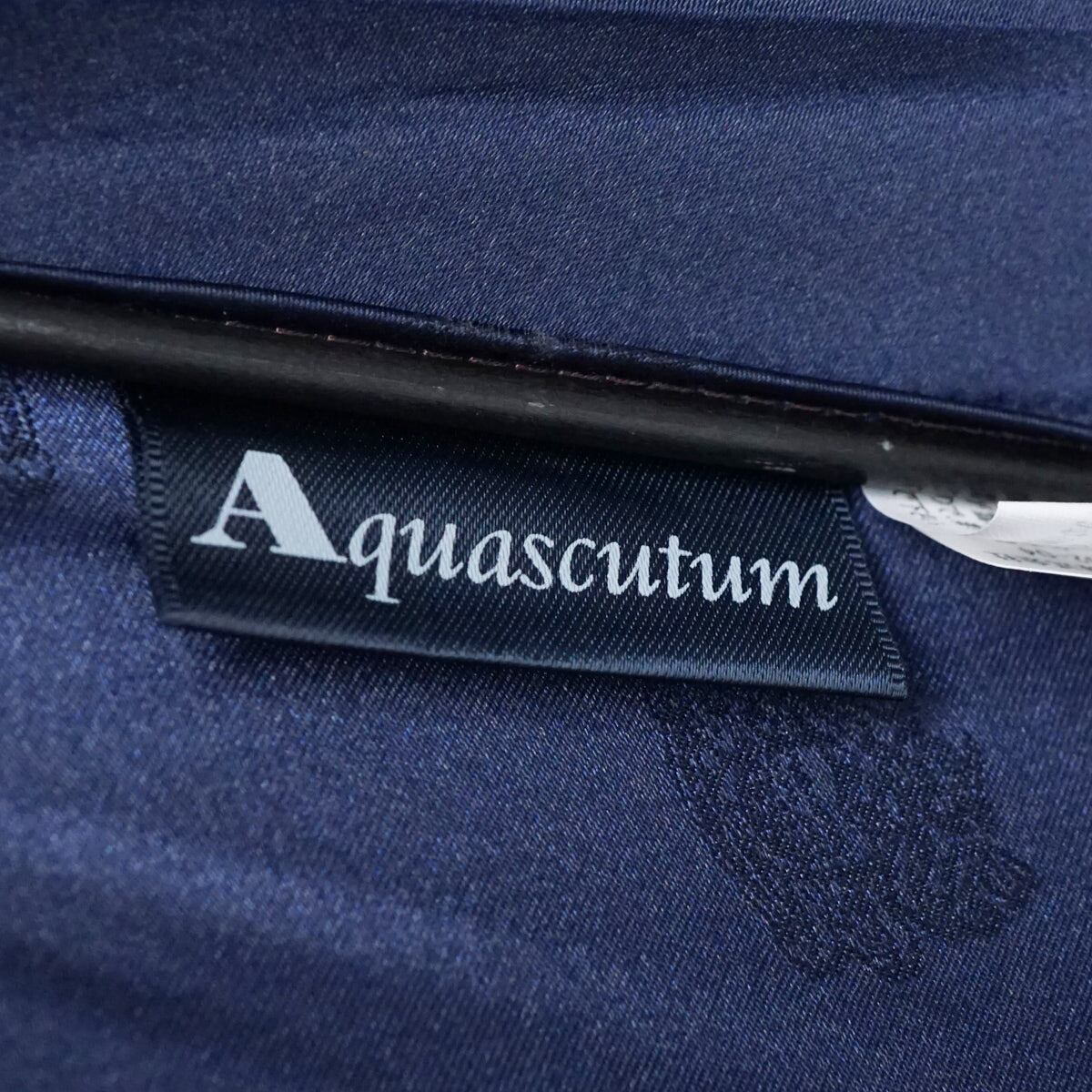 傘 Aquascutum アクアスキュータム 紳士傘 USED品 ネイビー 紺 ロゴ グラス骨 ジャンプ 大判 65cm S3232