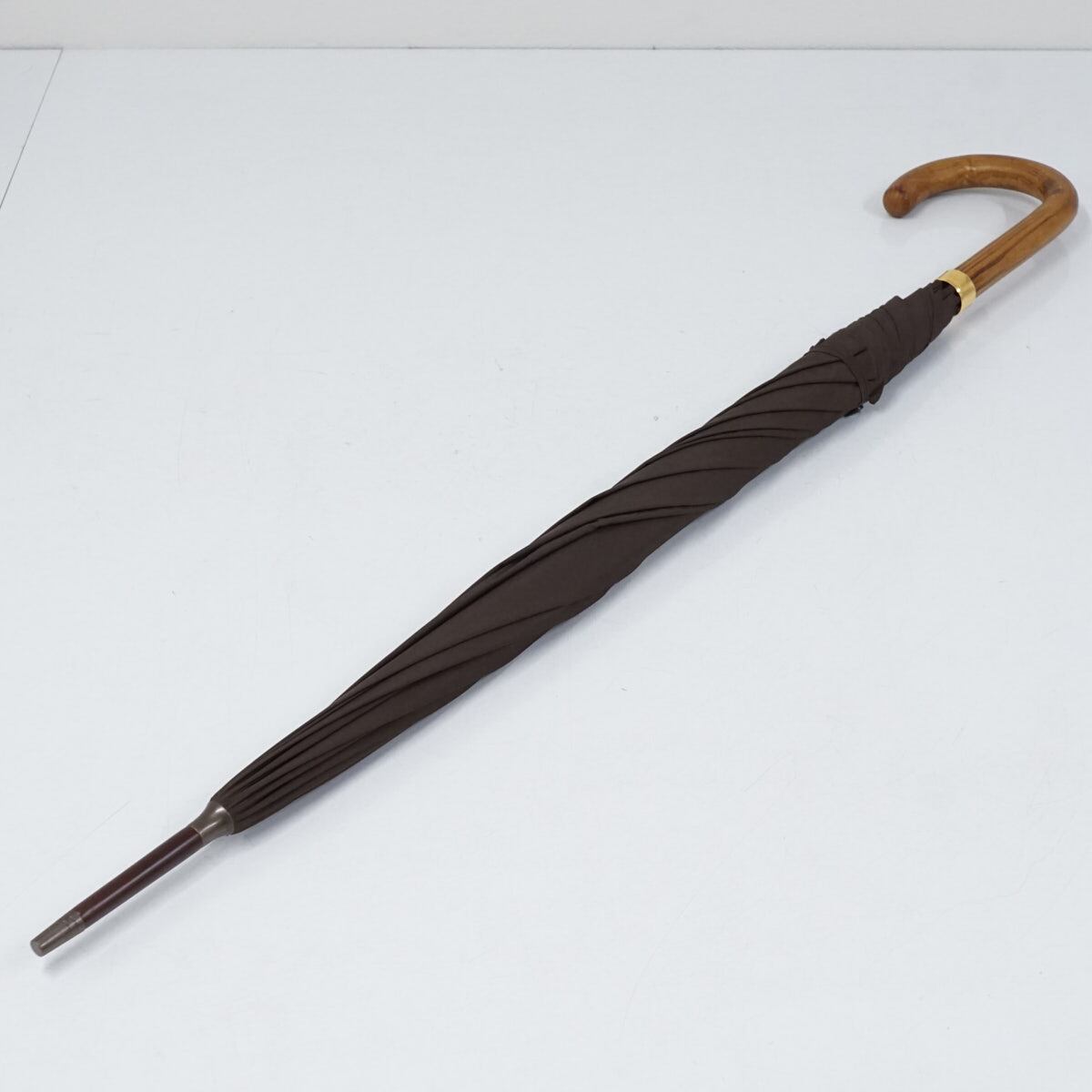 紳士傘 FOX UMBRELLAS フォックスアンブレラズ USED美品 傘 メンズ 天然木 ブラウン 無地 高級 63cm S3235
