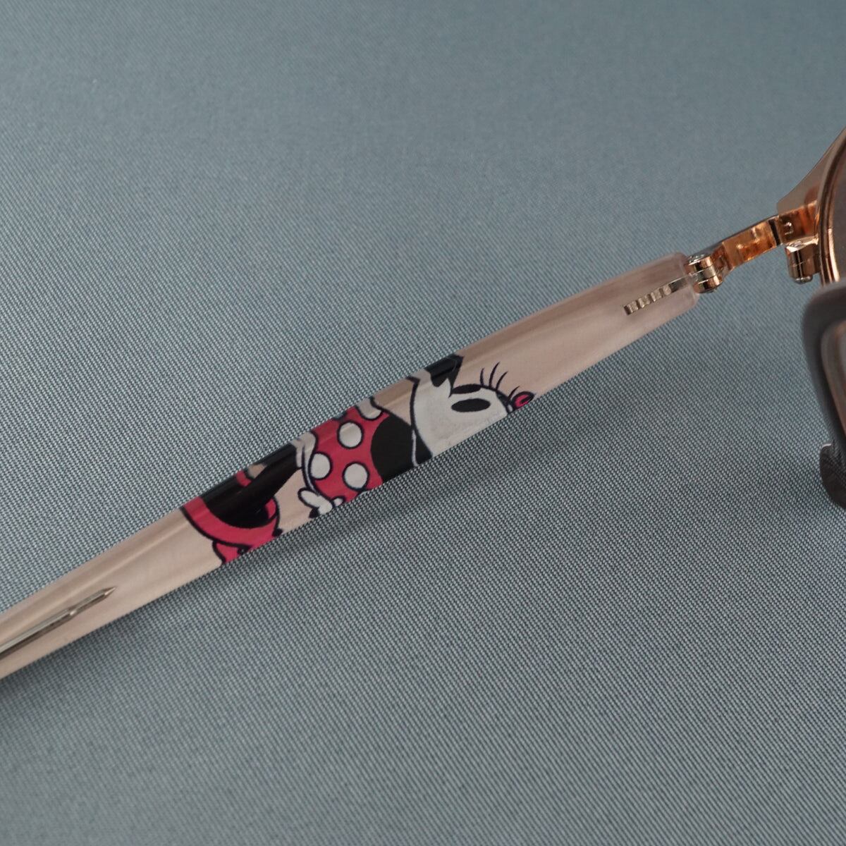 テンプルにミニーマウスのアートが大胆に描かれたサングラスです。
