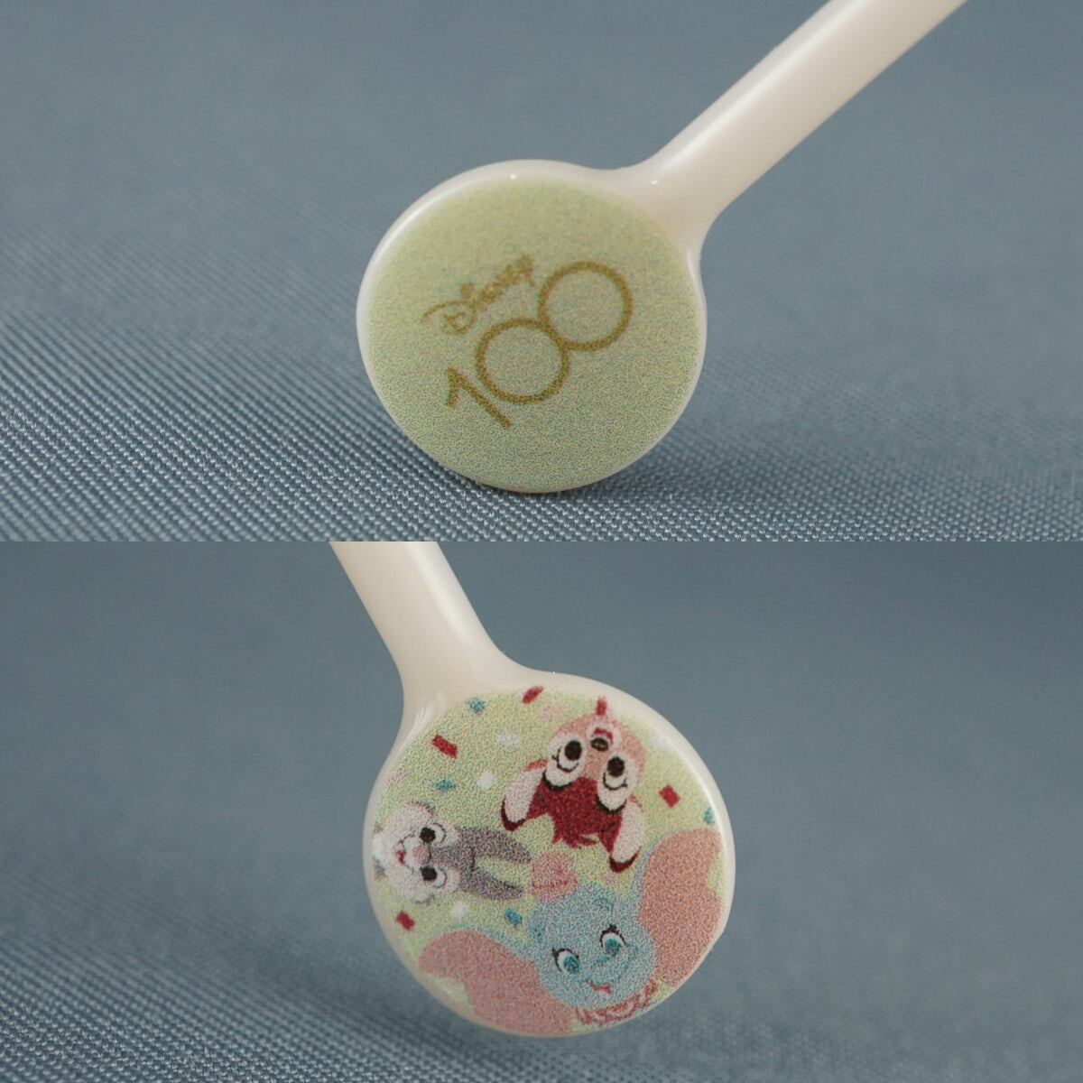 テンプルエンドにバンビ・とんすけ・ダンボのイラストとディズニー100のロゴがさりげなくデザインされたかわいらしい眼鏡です。