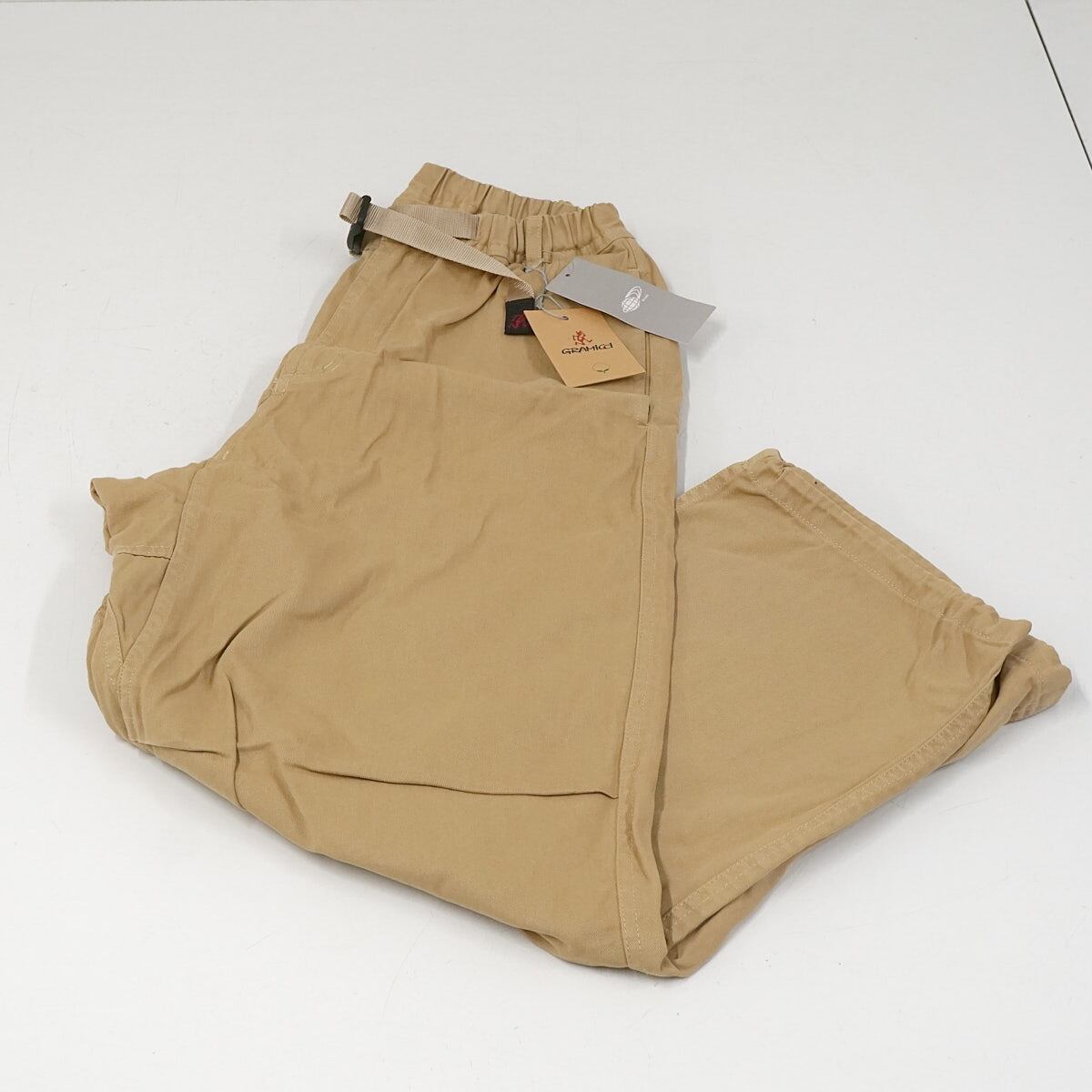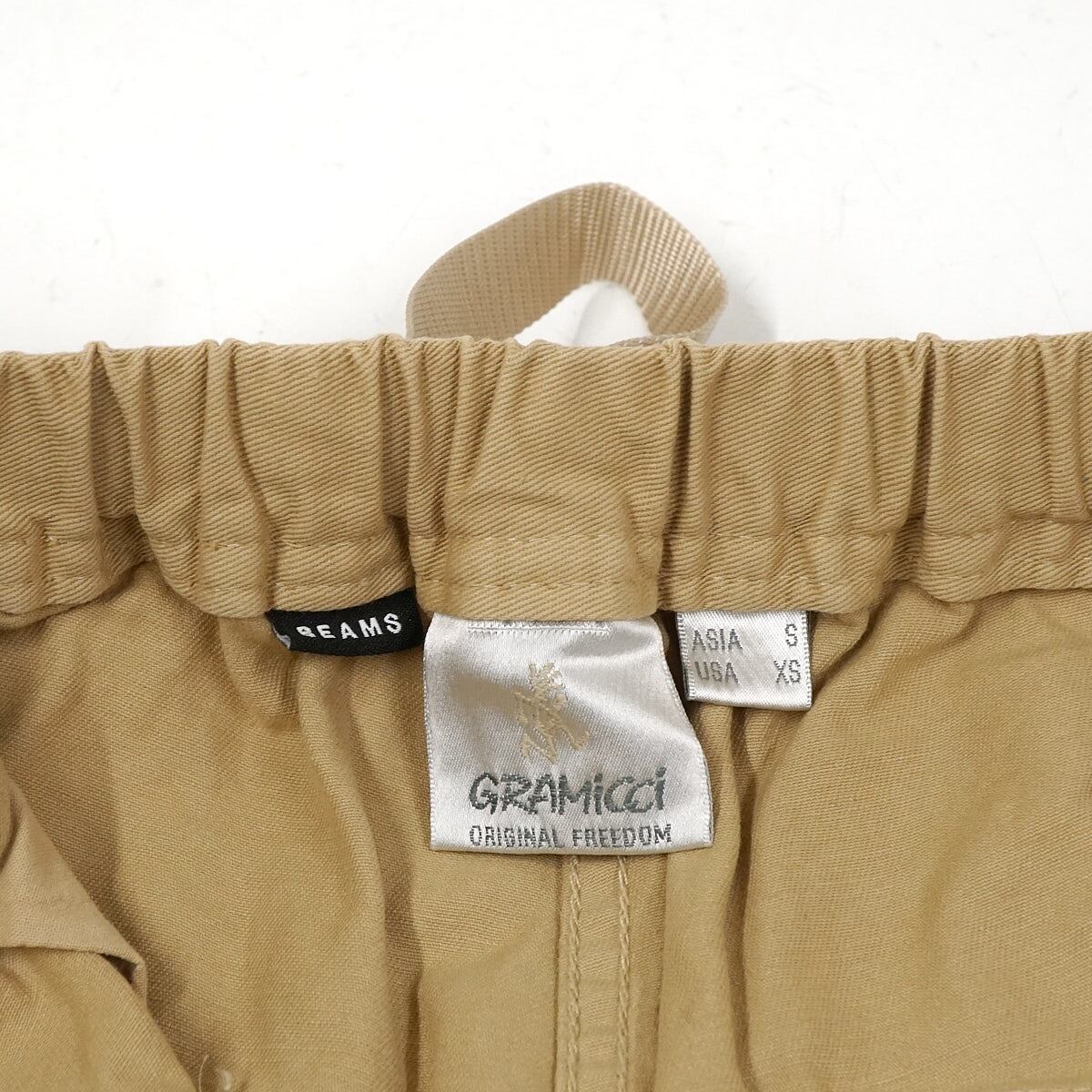 【未使用品】BEAMS 別注 Gramicci ピグメントコットンツイルオーバーパンツ Sサイズ メンズ ベージュ 裾ドローコード ワイドシルエット ビームス グラミチ X7827