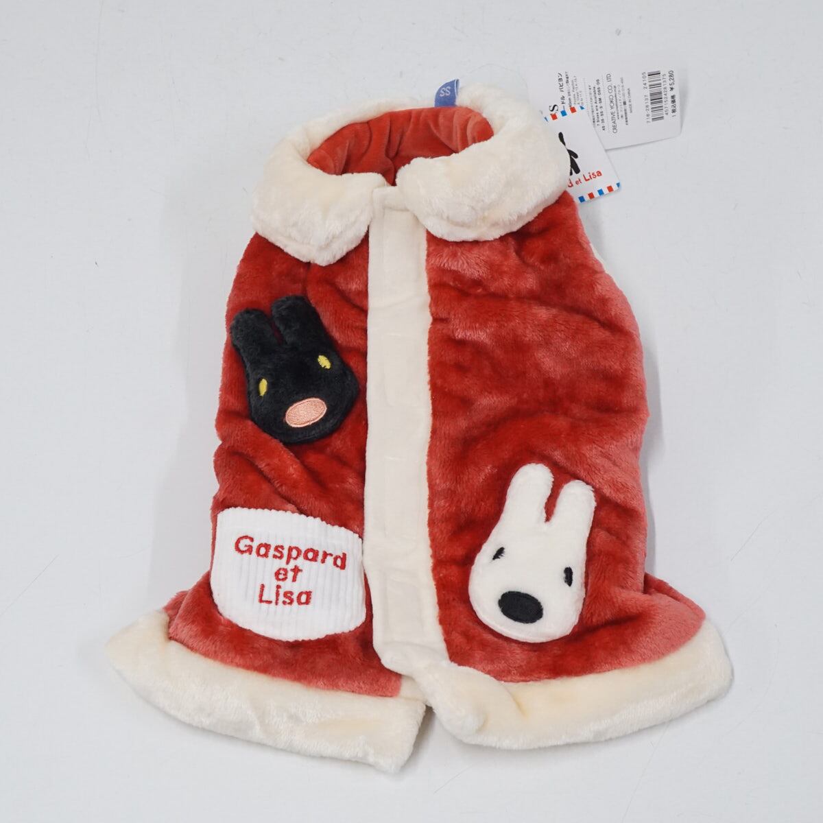【新品未使用】ペットパラダイス 犬 服 秋冬 ベスト 背中開き リサとガスパール もこふわ SS レッド 赤 トイプードル パピヨン X7785