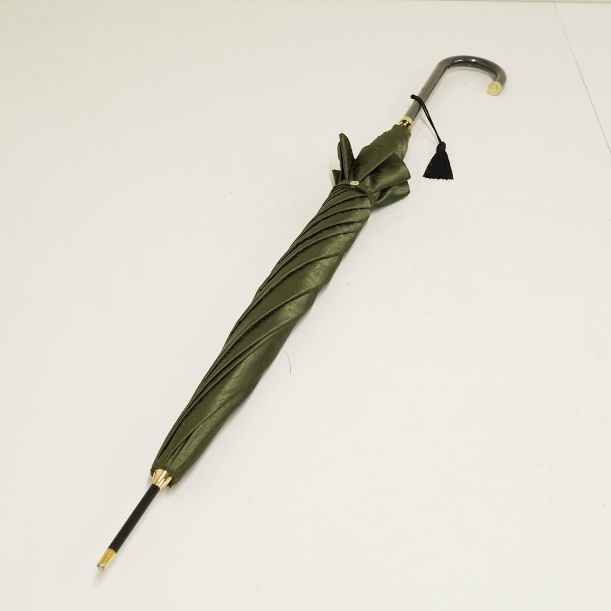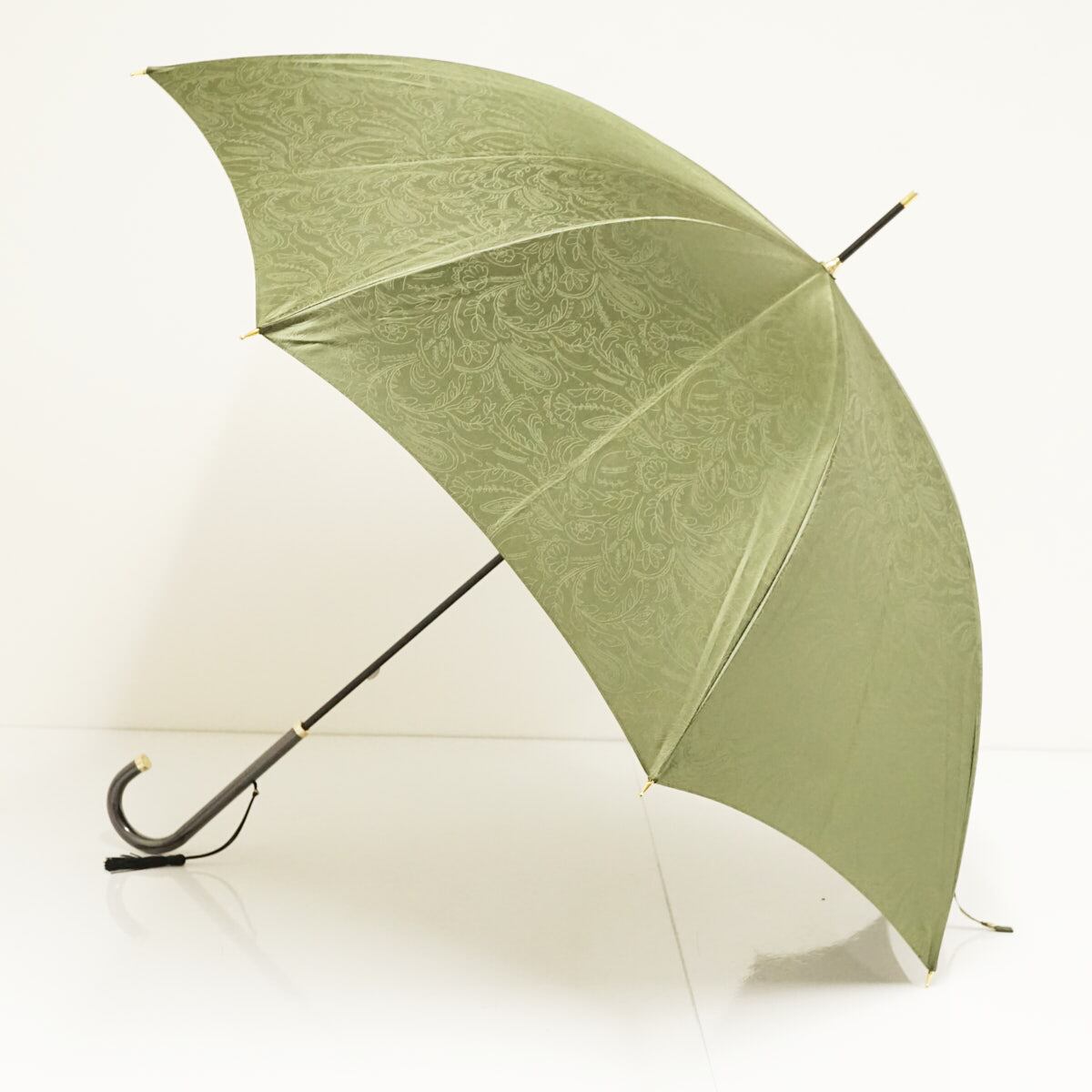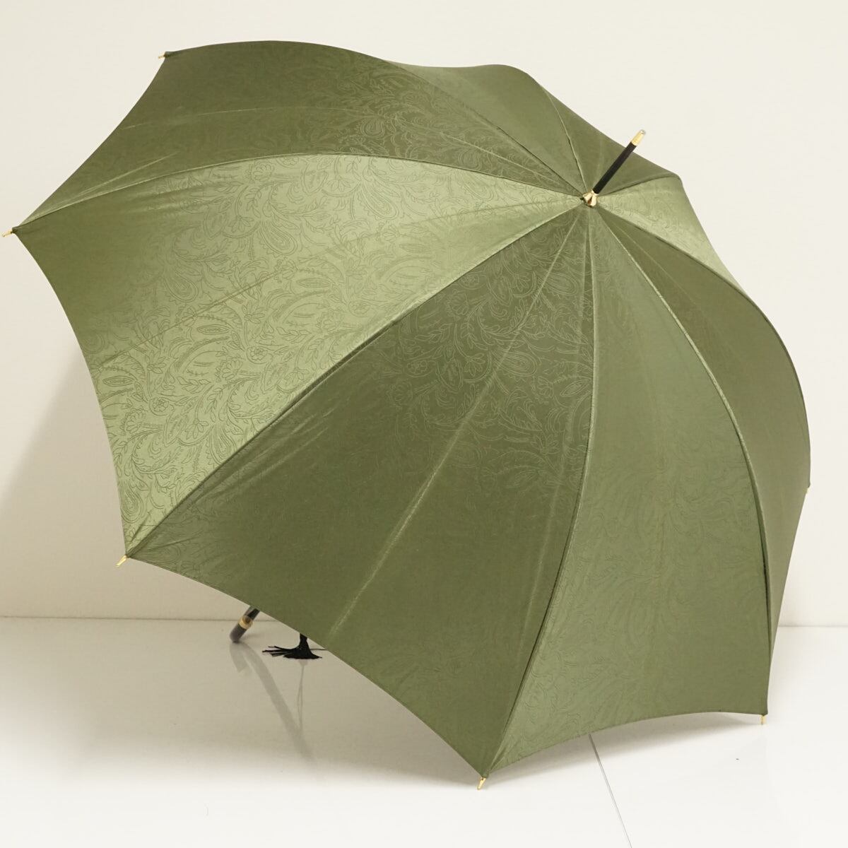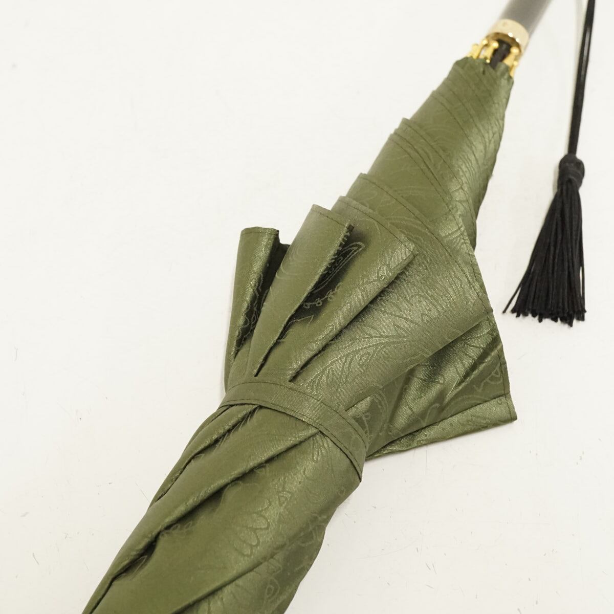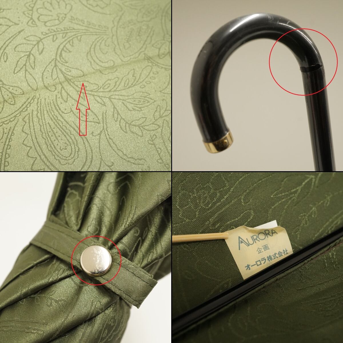 傘 AURORA オーロラ USED美品 日本製 グリーン タッセル付き 長傘 ペイズリー 60cm A3250