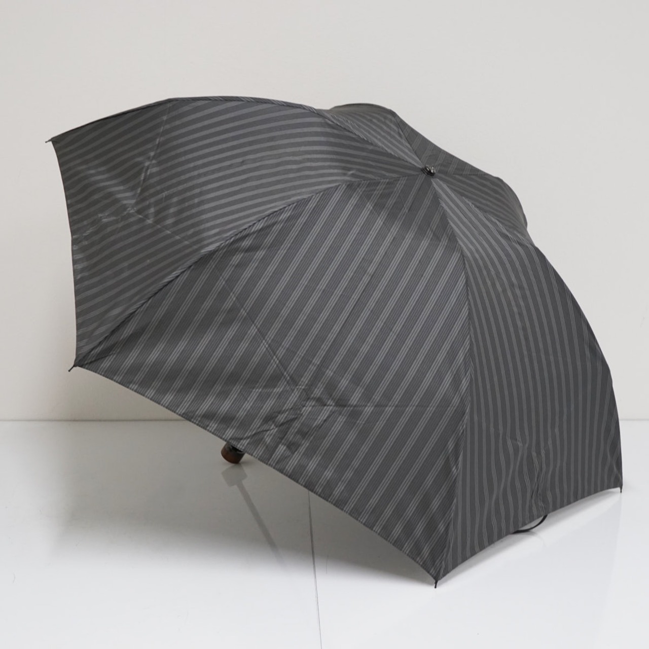 折りたたみ傘 Paul Stuart ポールスチュアート USED美品 メンズ ストライプ ダークグレー 高級傘 60cm FA9436