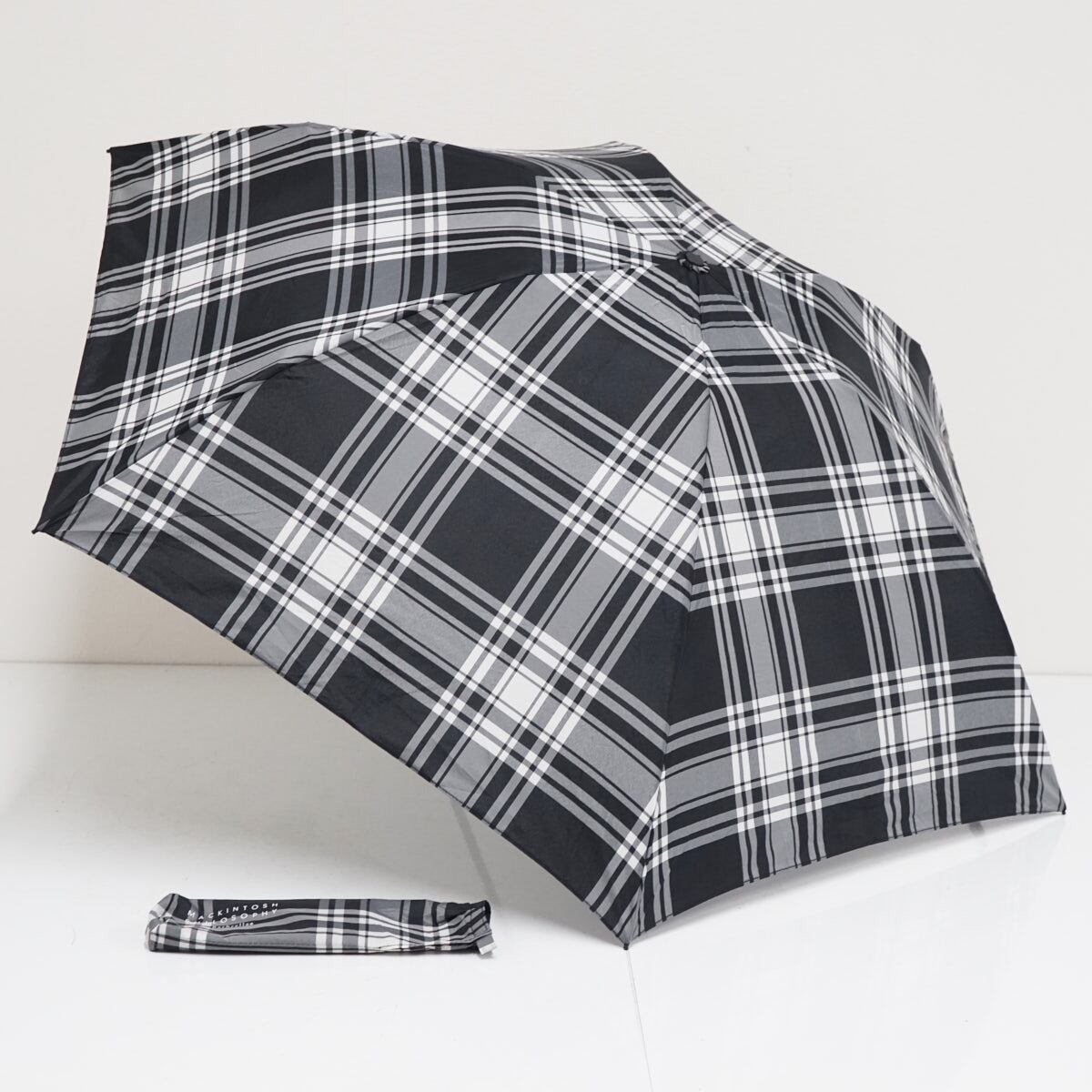 折りたたみ傘 MACKINTOSH PHILOSOPHY マッキントッシュフィロソフィー USED美品 バーブレラ チェック ブラック 軽量 55cm FS9438