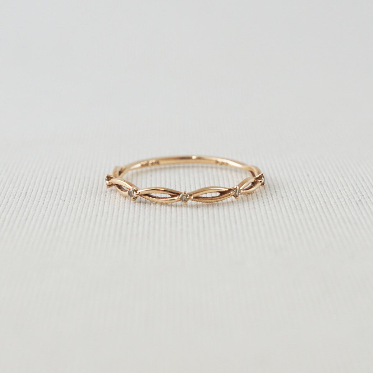 シンプルな美しさを讃えながら、ひとさじの遊び心を添えたジュエリーを展開する「ete(エテ)」のK10デザインリングです。
