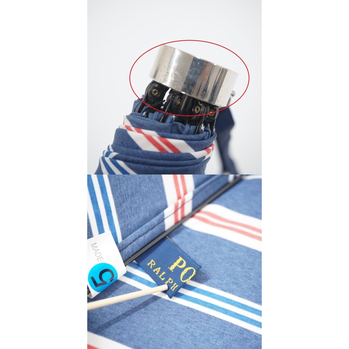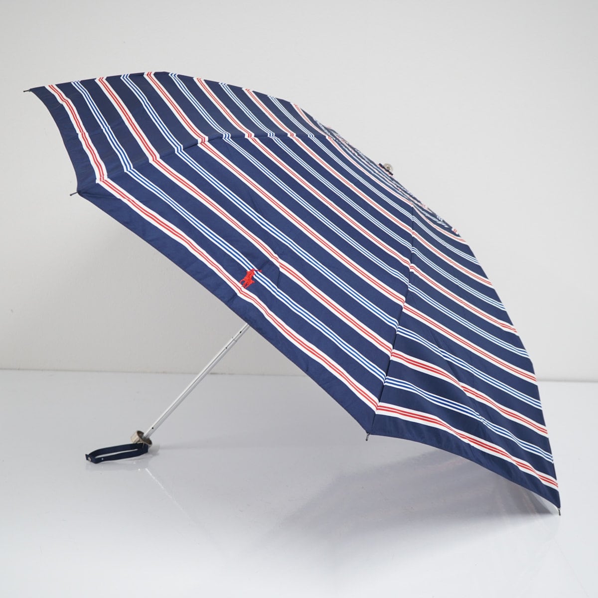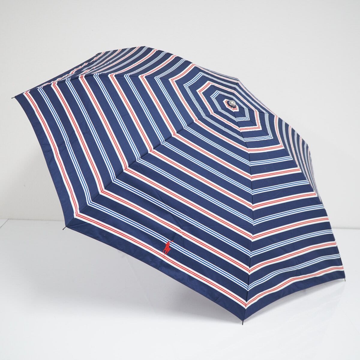 折りたたみ傘 POLO RALPH LAUREN ポロラルフローレン USED美品 ボーダー ロゴ ネイビー 55cm FS9439