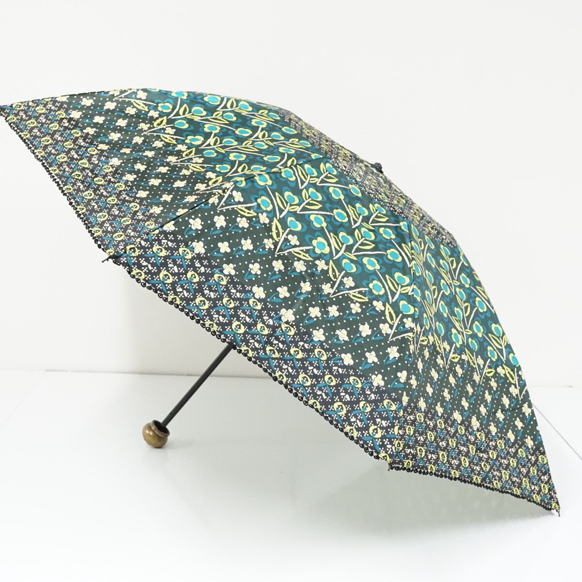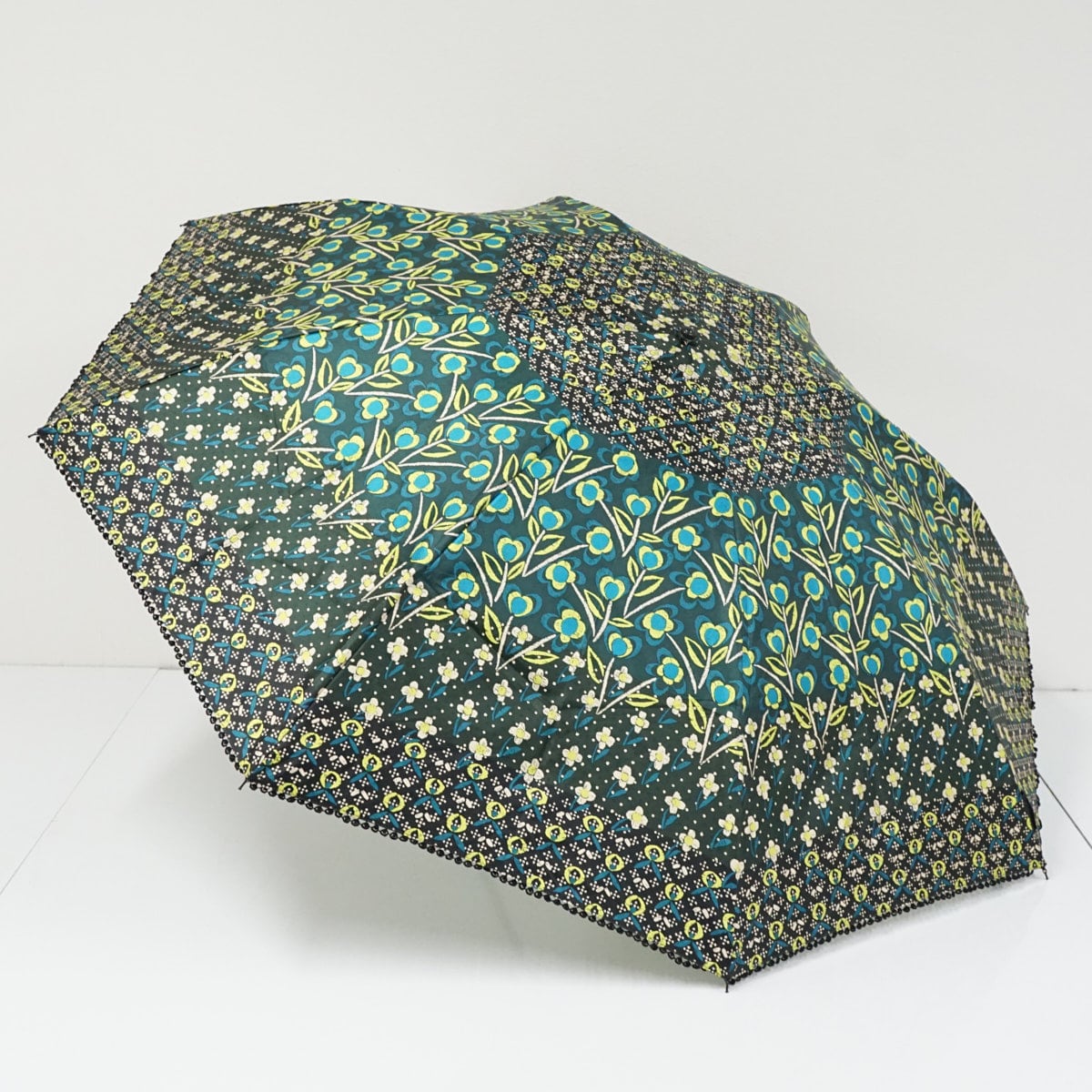 折りたたみ傘 ANNA SUI アナスイ USED美品 フラワー ドット グリーン系 ブランド 折傘 55cm FS9440