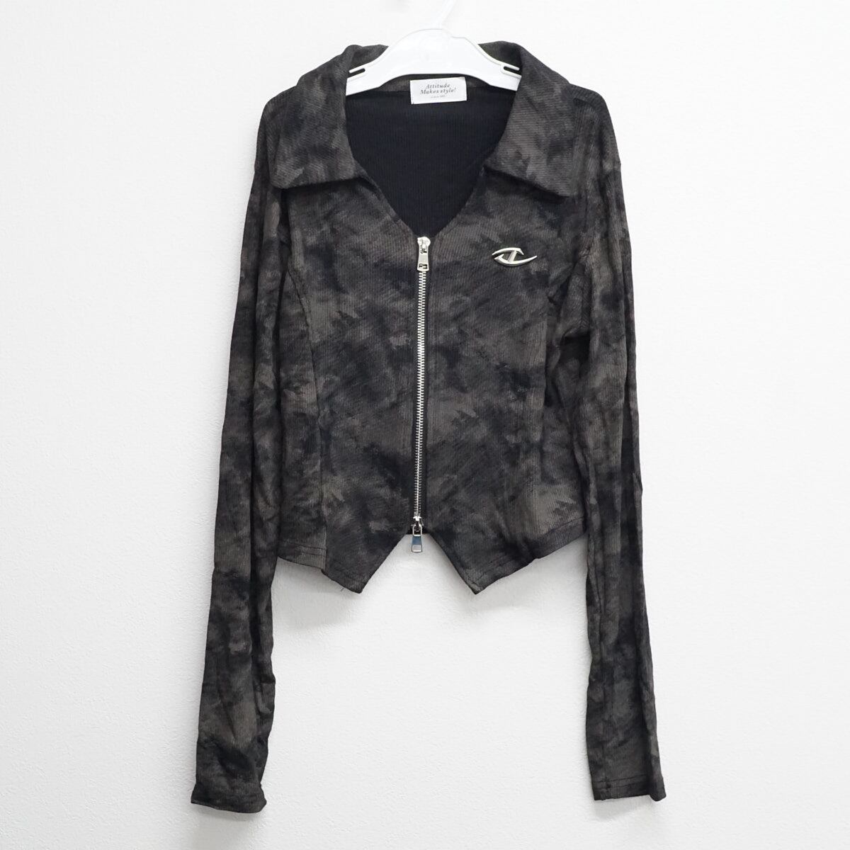 SPINNS スピンズ 長袖ジップカーディガン ムラ染め風 USED美品 レディース 韓国 ストリート ブラック Fサイズ X7914