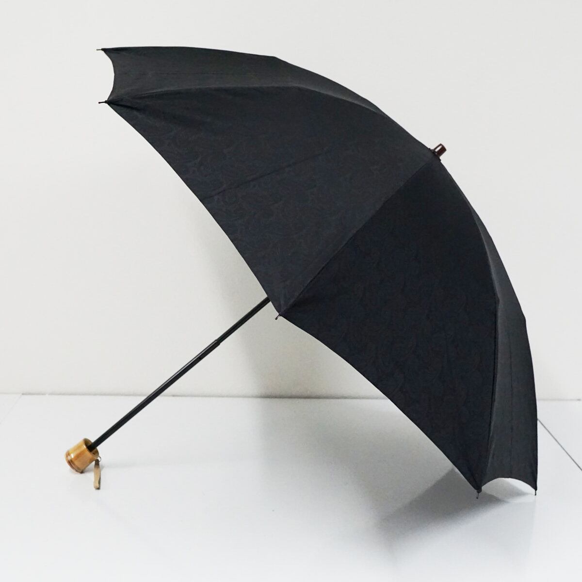 折りたたみ傘 前原光榮商店 USED超美品 幾何学模様 ペイズリー 日本製 高級傘 ブラック ユニセックス 50cm FS9443