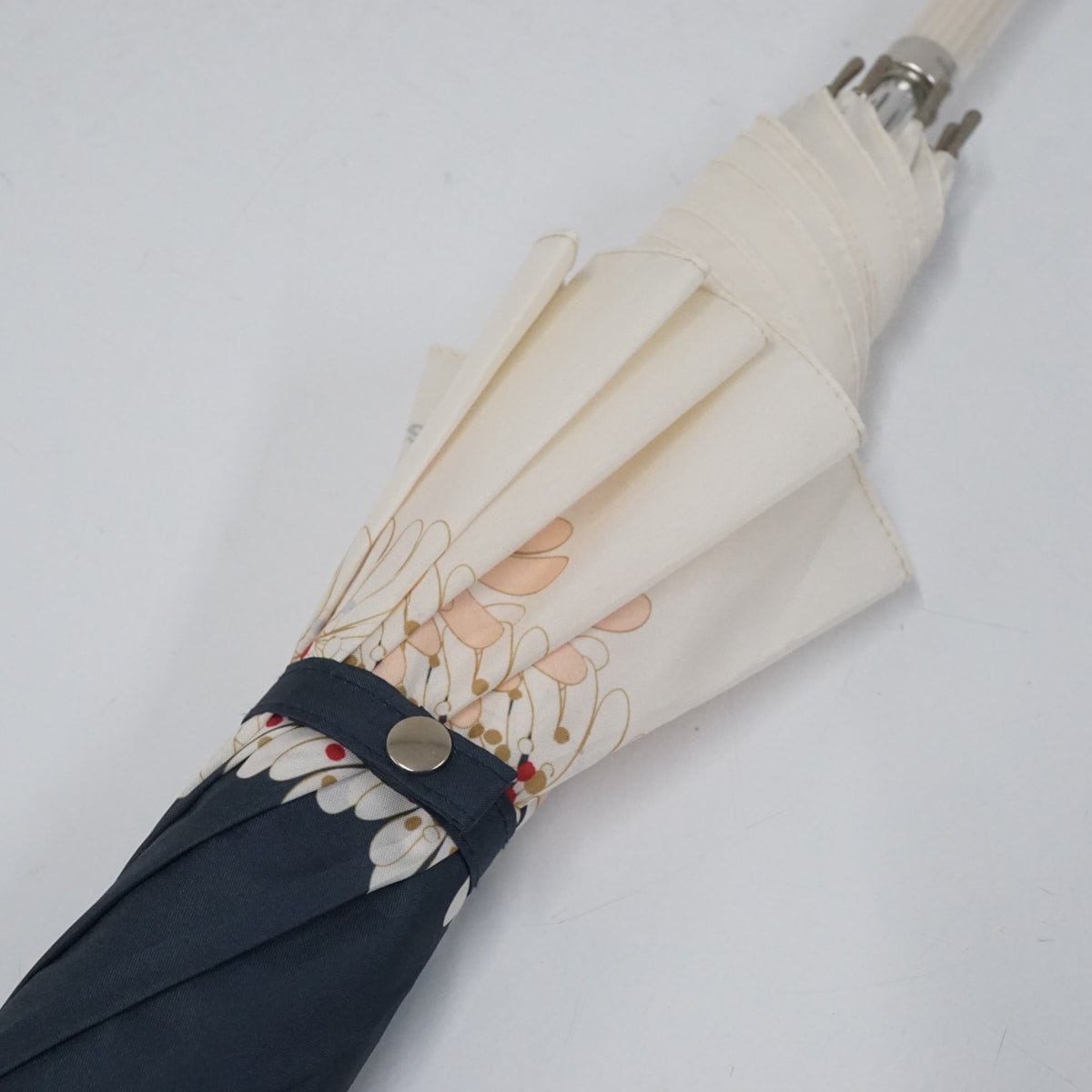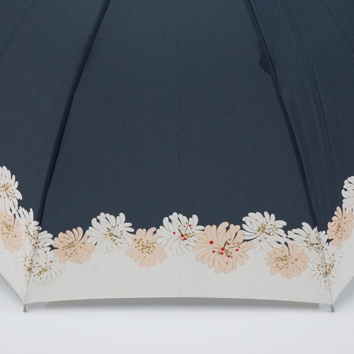 傘 PAUL&JOE ACCESSOIRES ポールアンドジョーアクセソワ USED品 クリザンテーム 花柄 ネイビー×アイボリー 60cm A3272