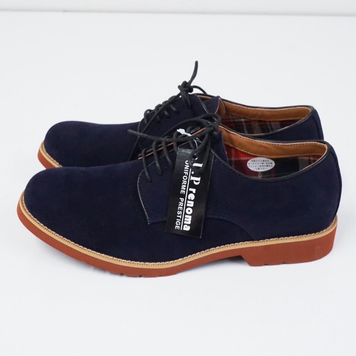 【新品】U.P renoma ユーピーレノマ 9033 レースアップシューズ 25.0cm メンズ 3E相当 防滑 レンガソール フェイクスエード ネイビー X7926