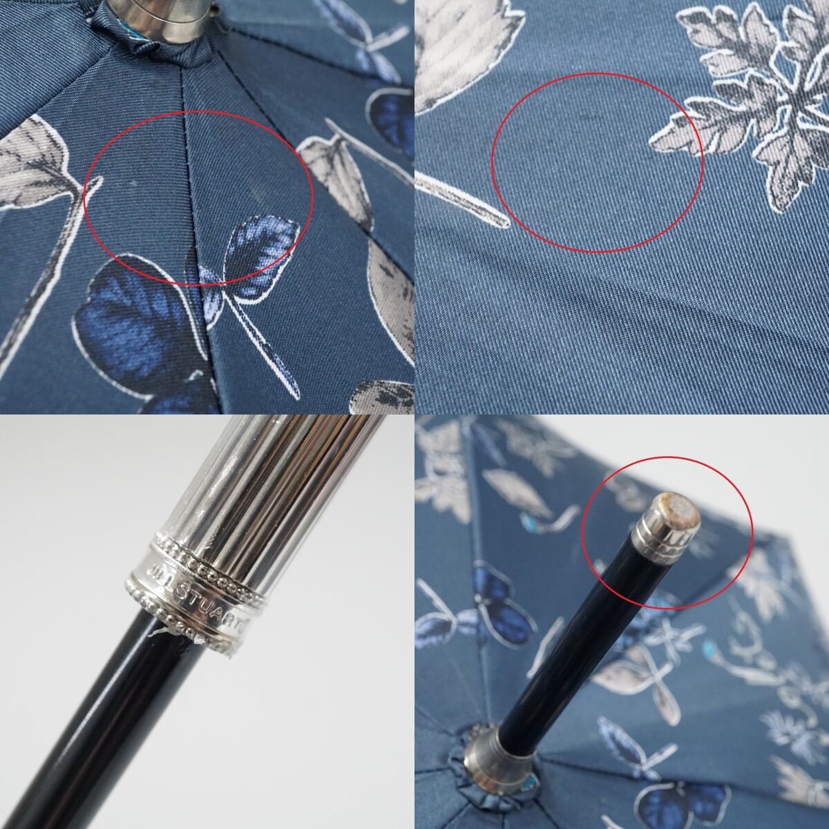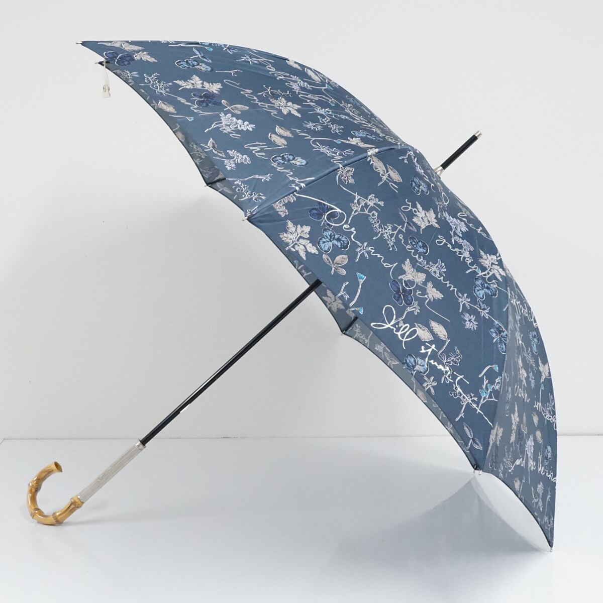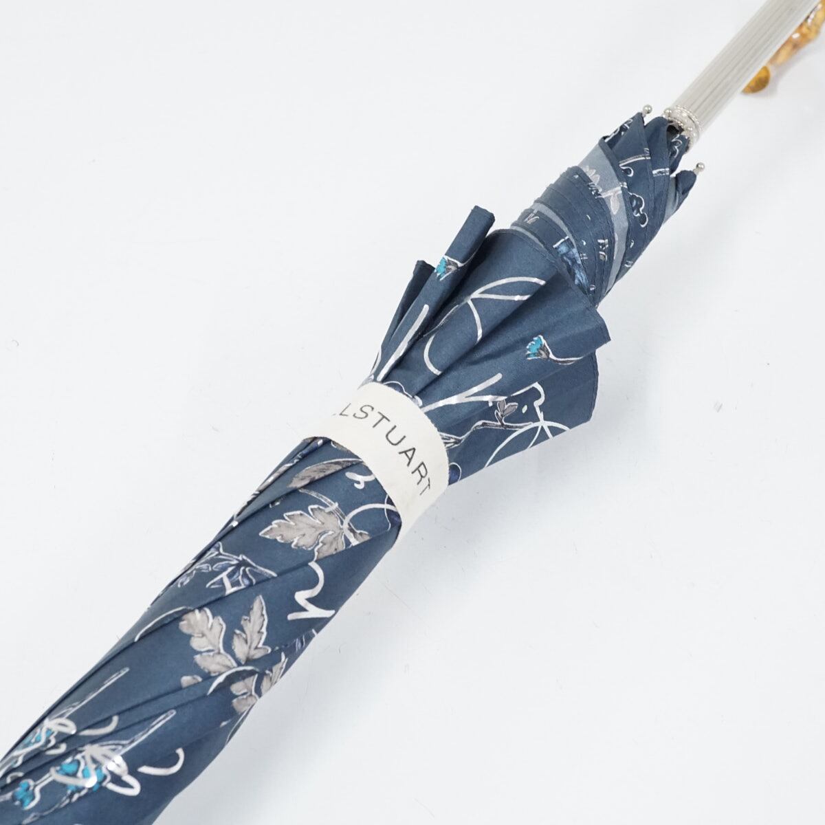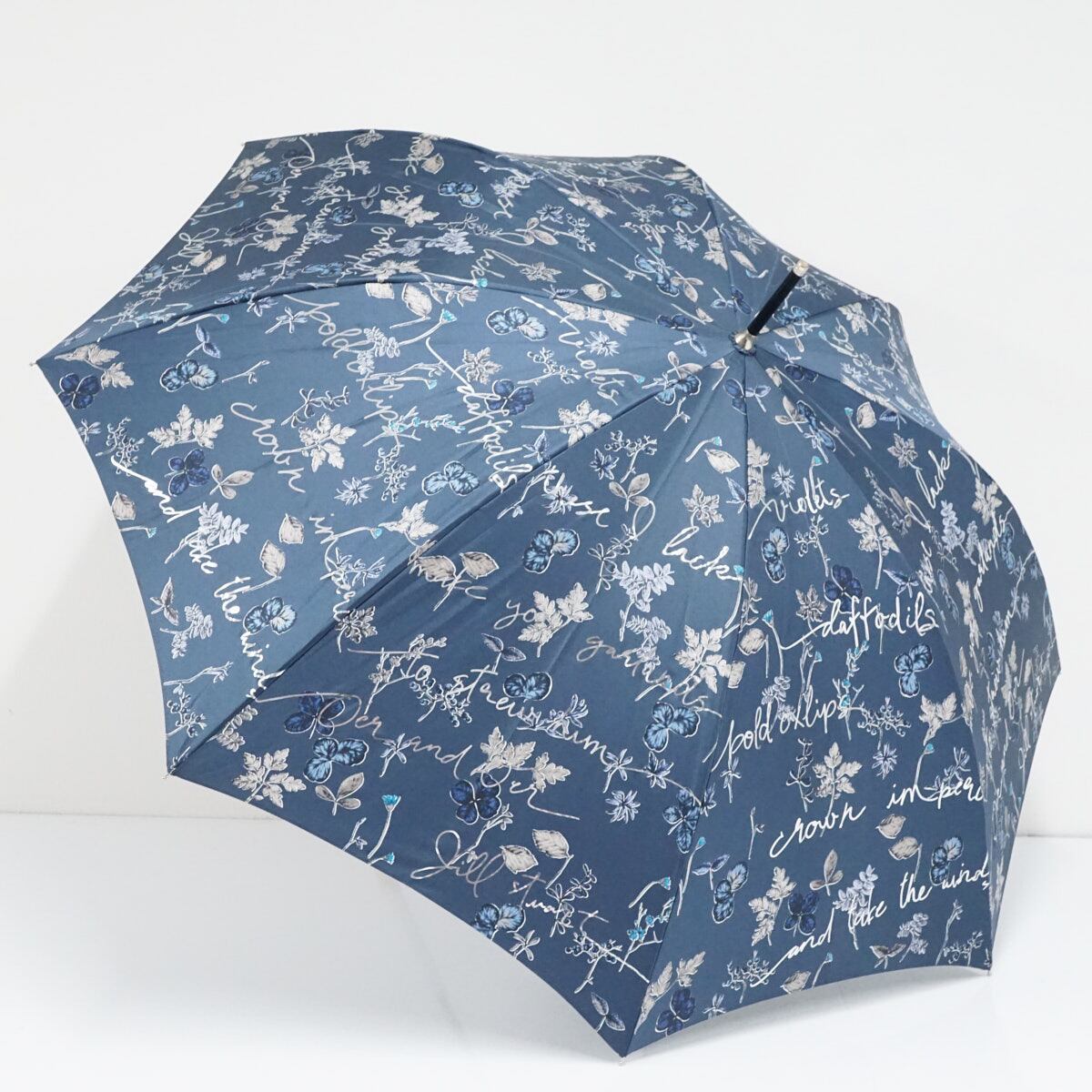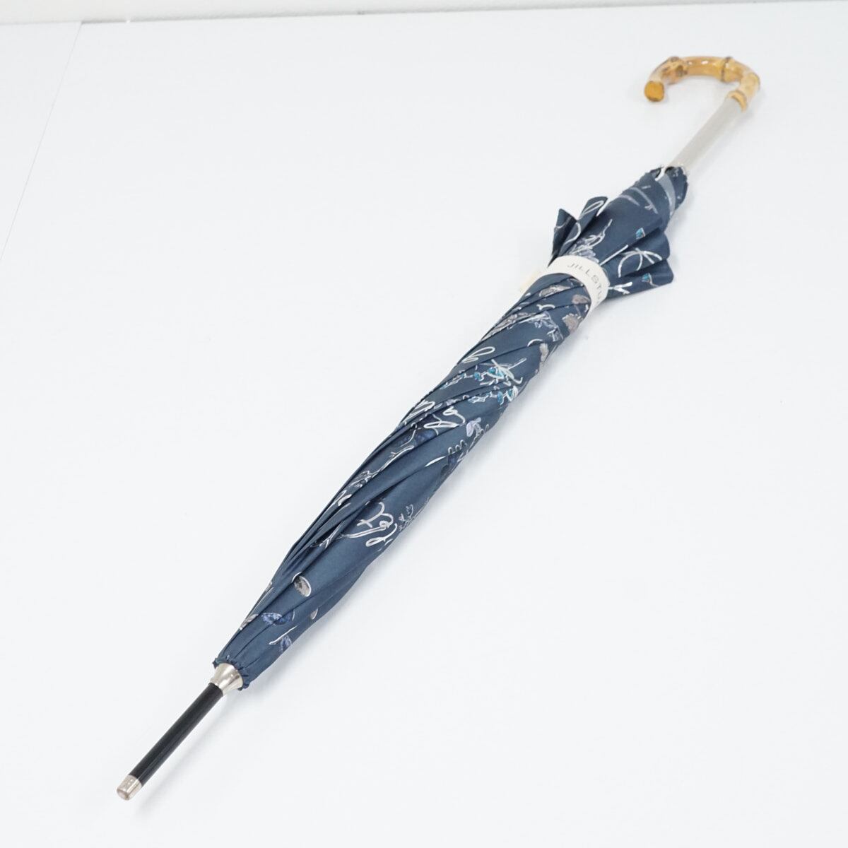 傘 JILL STUART ジルスチュアート USED美品 ボタニカル柄 箔プリント 草花 竹手元 グラス骨 60cm S3284