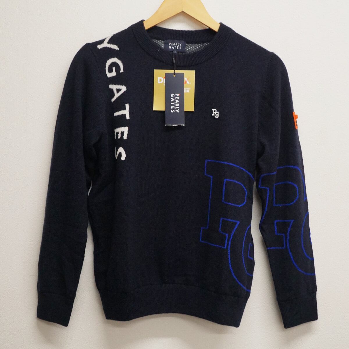 【新品】PEARLY GATES パーリーゲイツ 天竺×DIAPLEX クルーネックニットプルオーバー サイズ0 ネイビー X7983