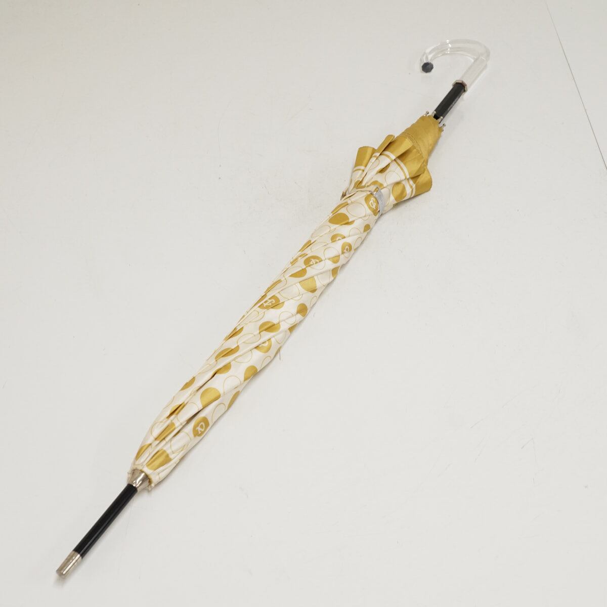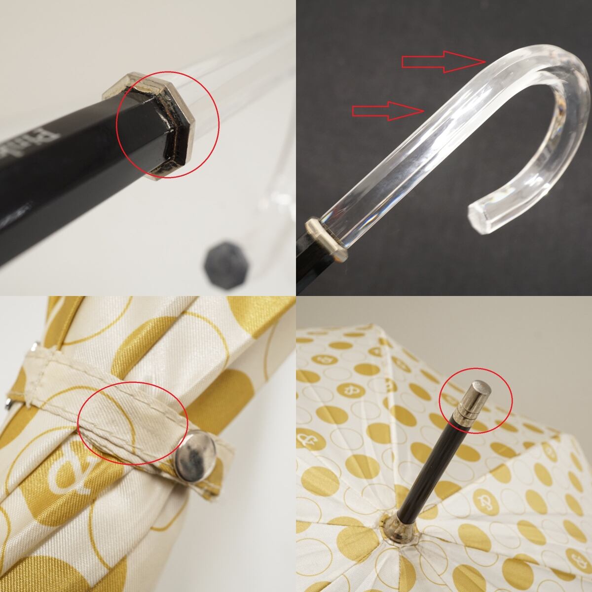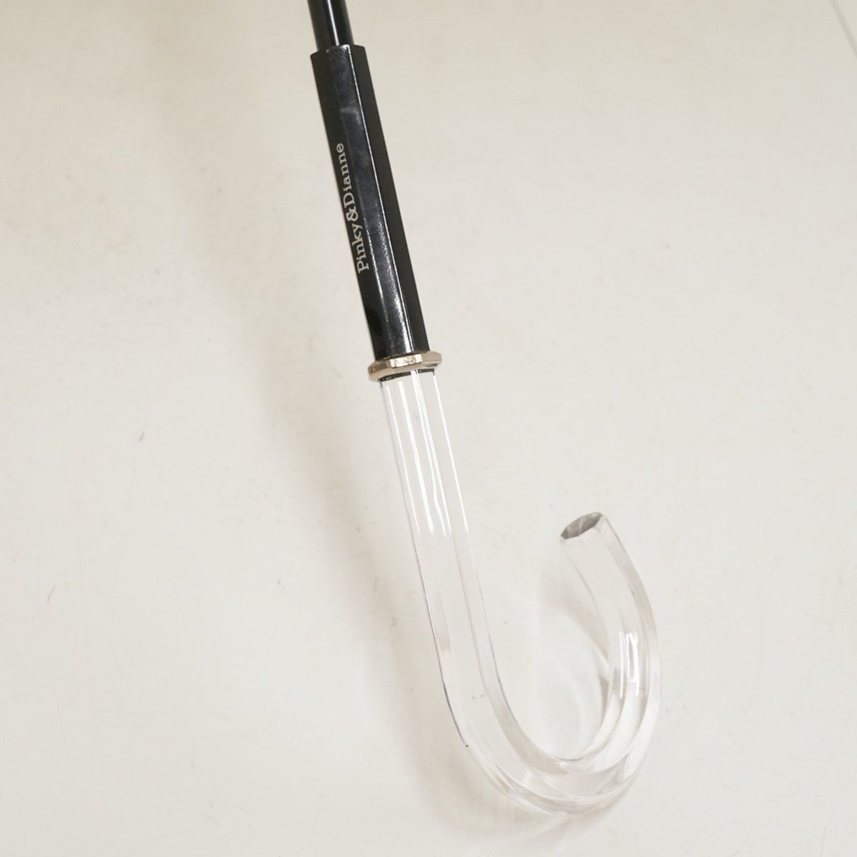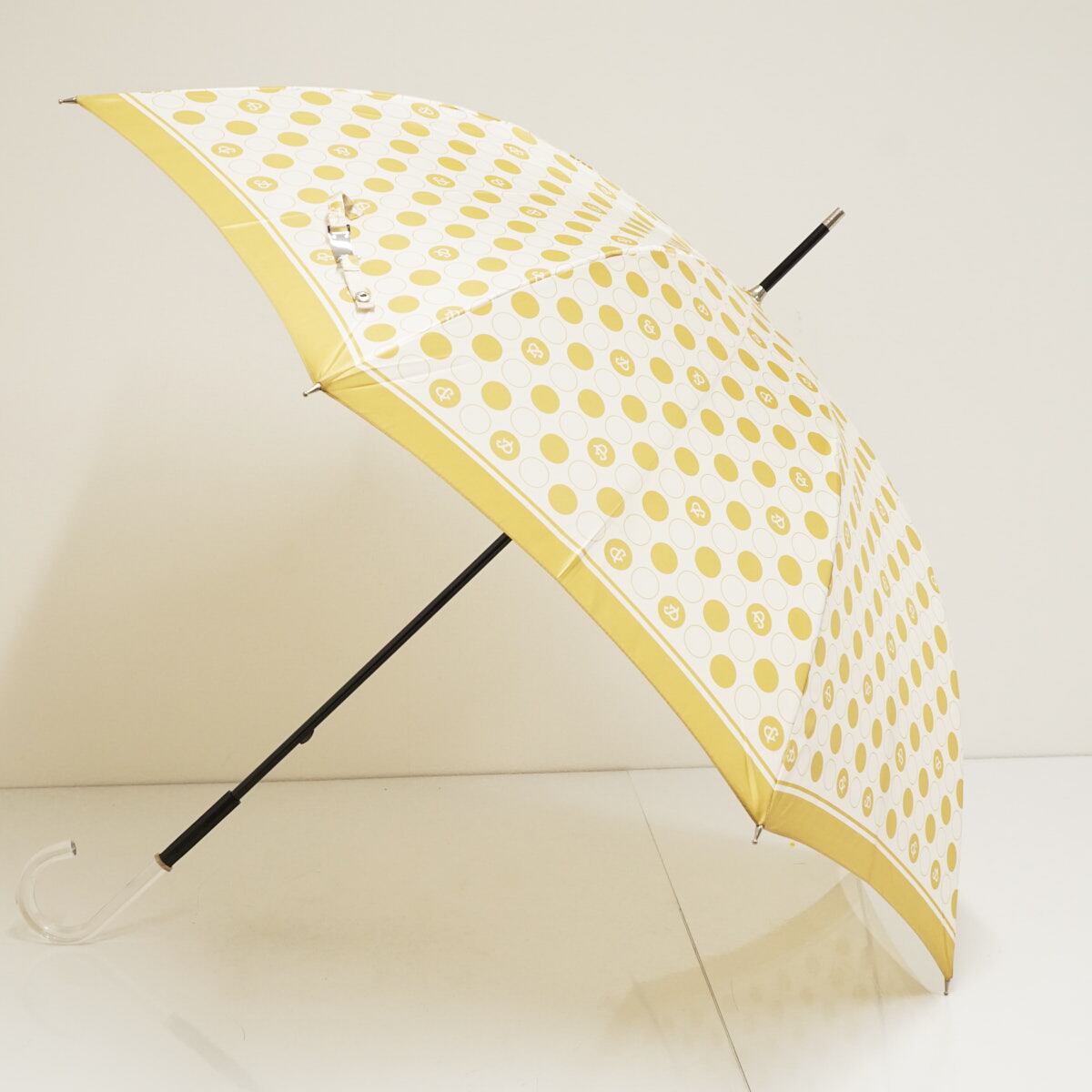 傘 Pinky&Dianne ピンキー&ダイアン USED品 ドット ロゴ マスタード クリア手元 グラス骨 60cm A3298