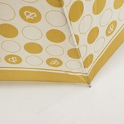 光沢のある生地に、マスタードカラーでドットや「&」を全体に織り込んだデザインです。