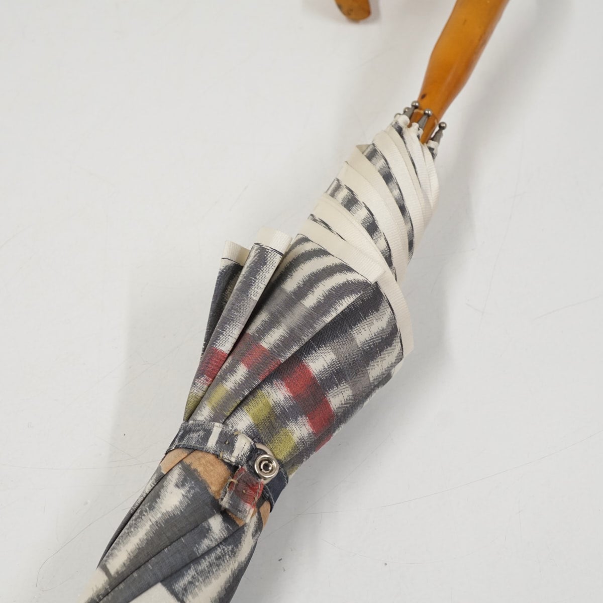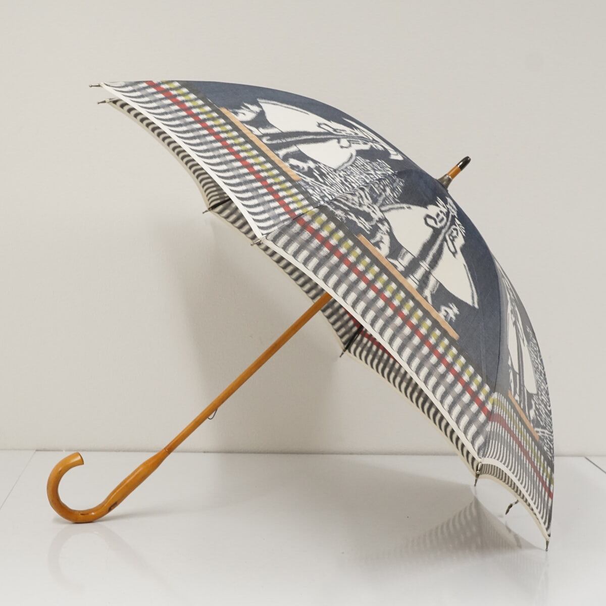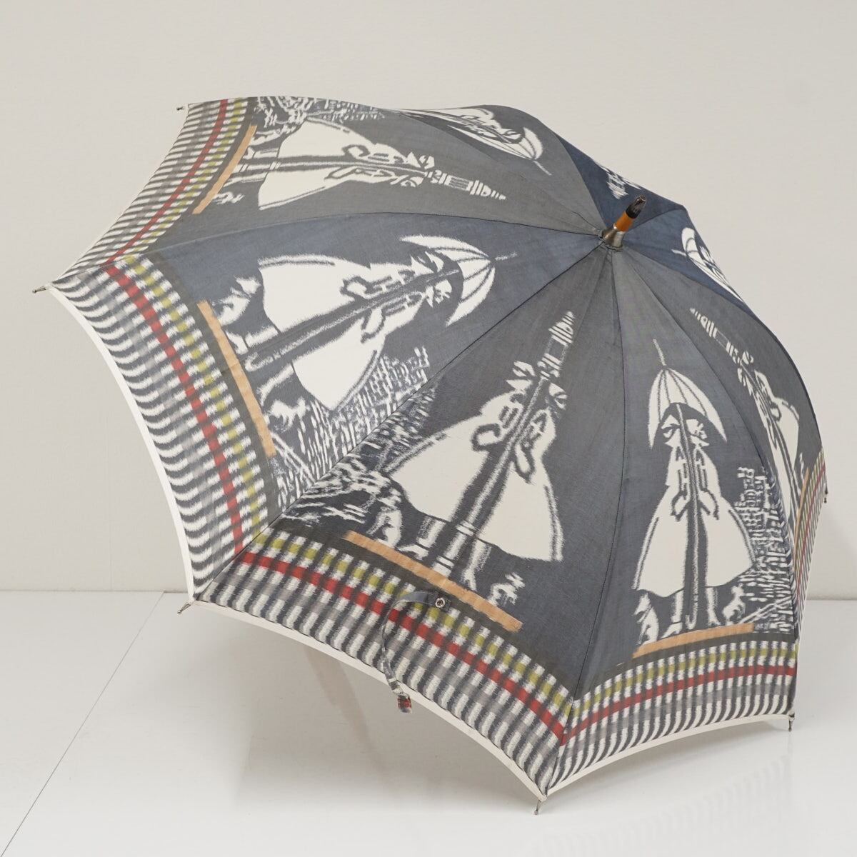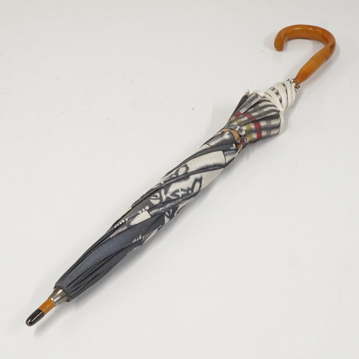 日本製高級傘 USED品 ほぐし織 アート グレー 天然木 おしゃれ 50cm S3149