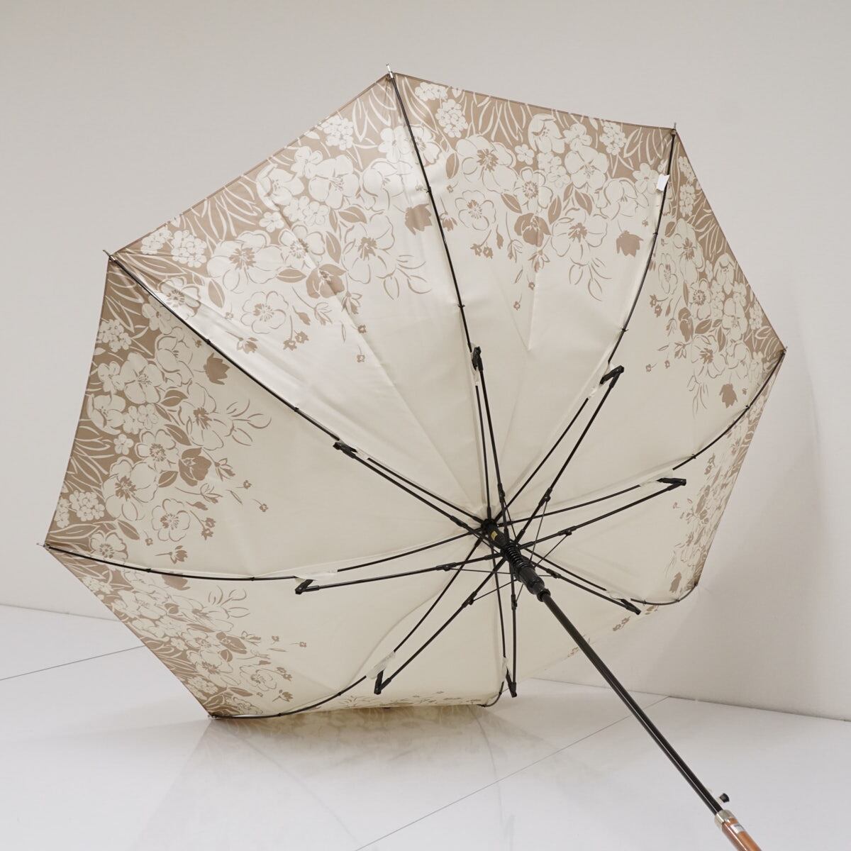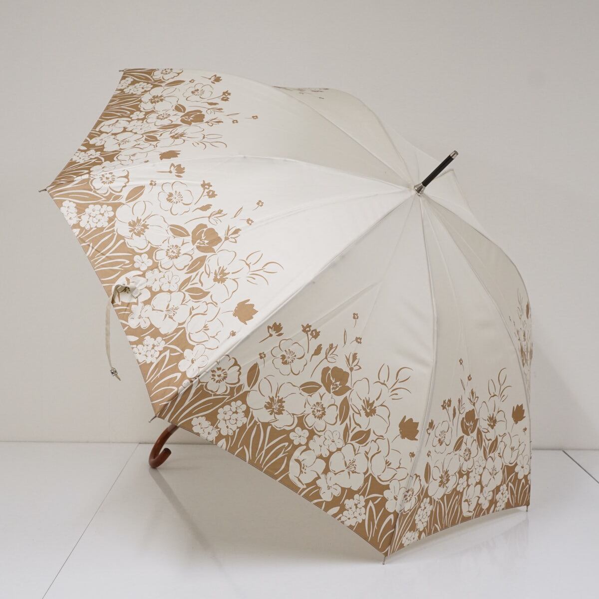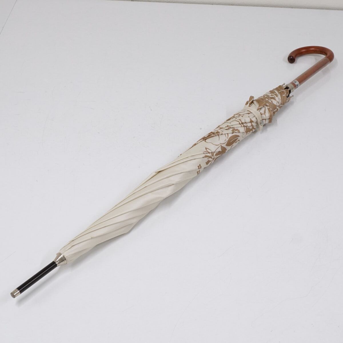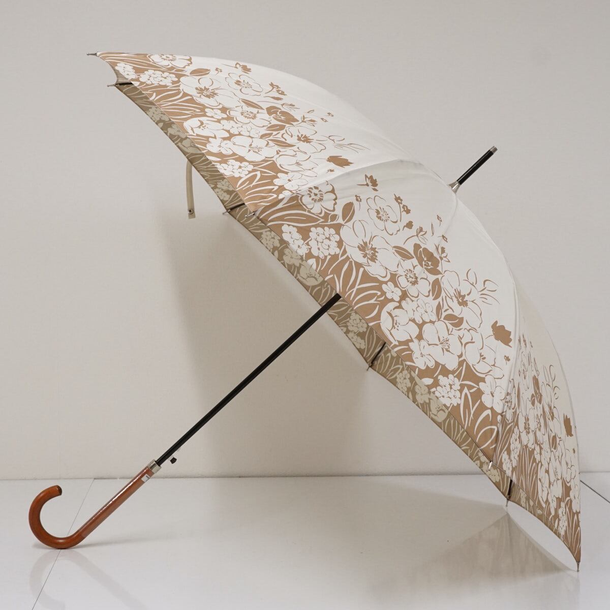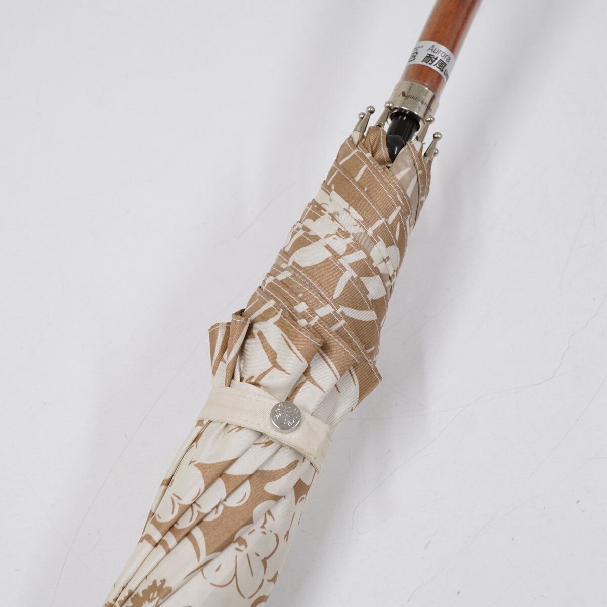 耐風傘 Aquascutum アクアスキュータム USED美品 フラワープリント 花柄 ホワイト ベージュ ジャンプ グラス骨 60cm A3176