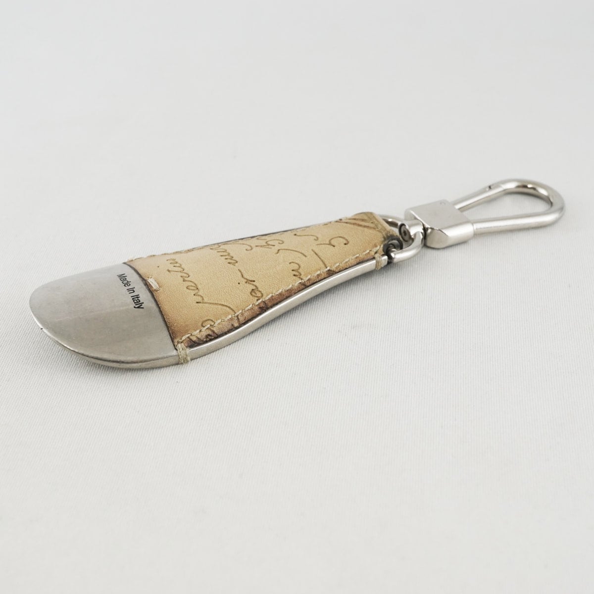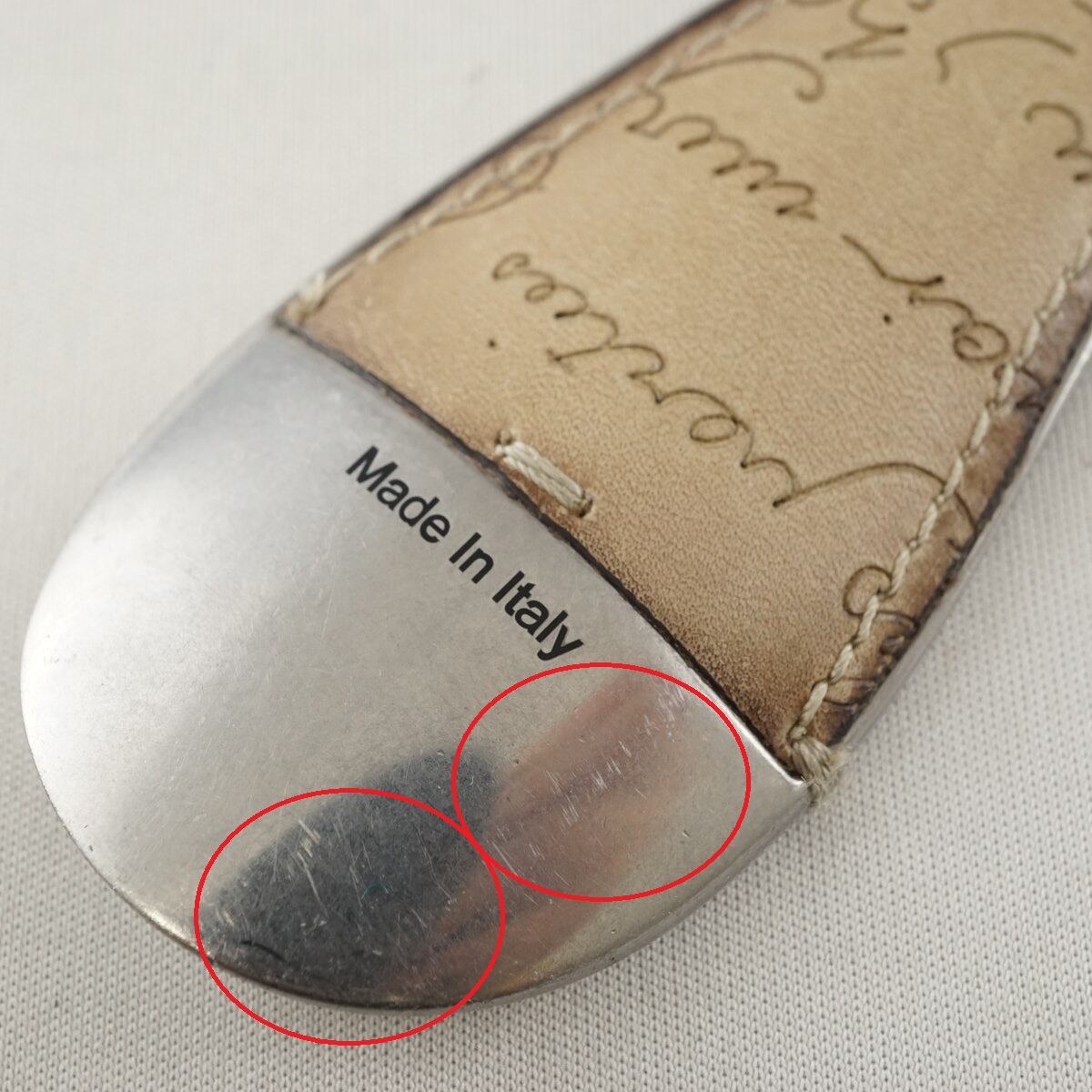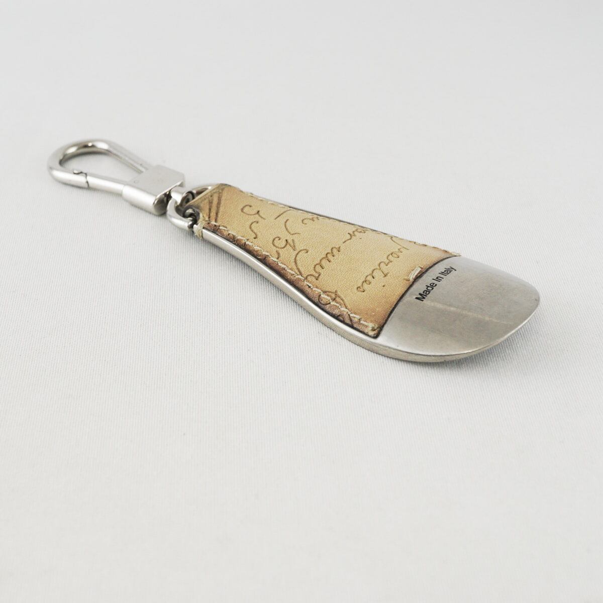 Berluti ベルルッティ USED品 メンズ ブランド 靴べら フルスクリットレザー シューホーン キーリング ベージュ シルバー金具 X8033