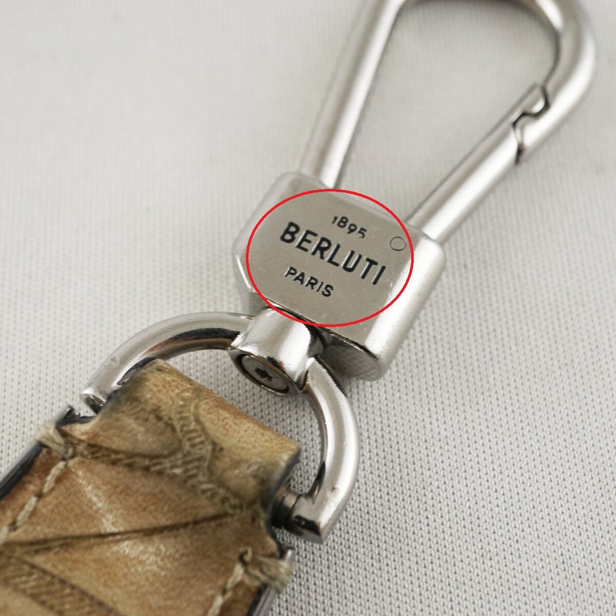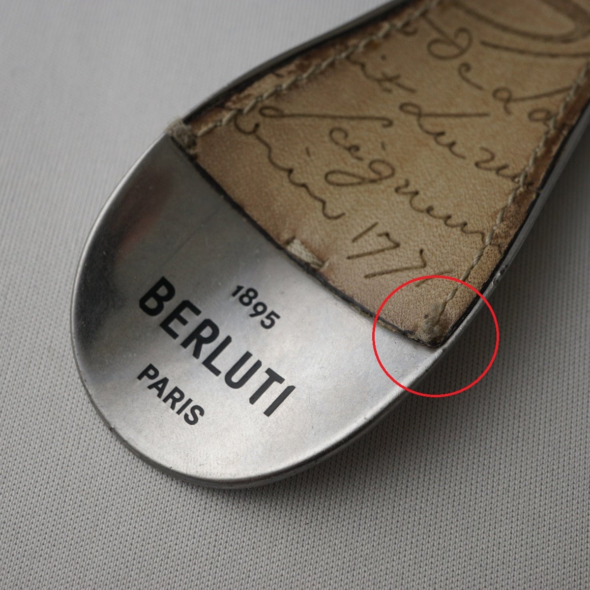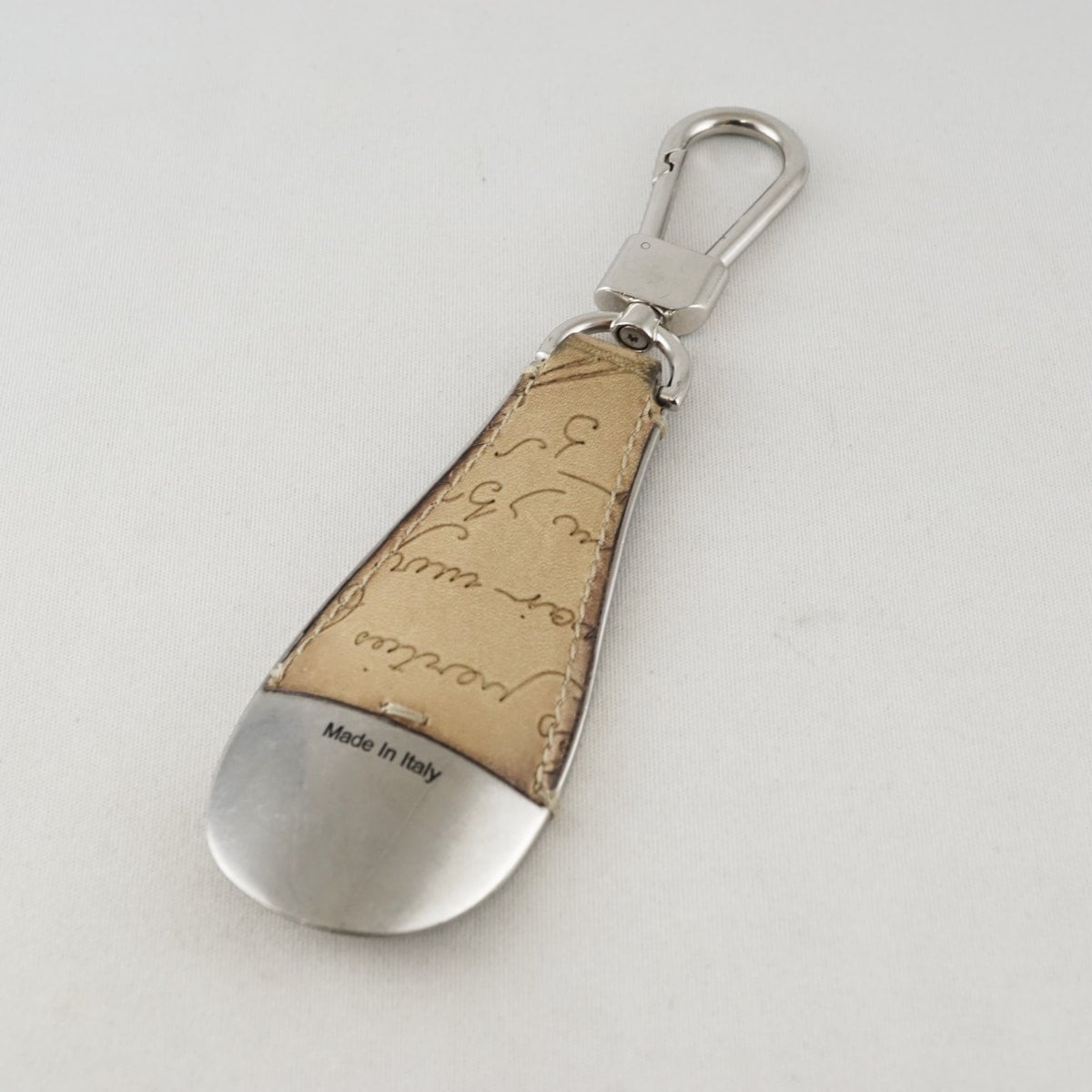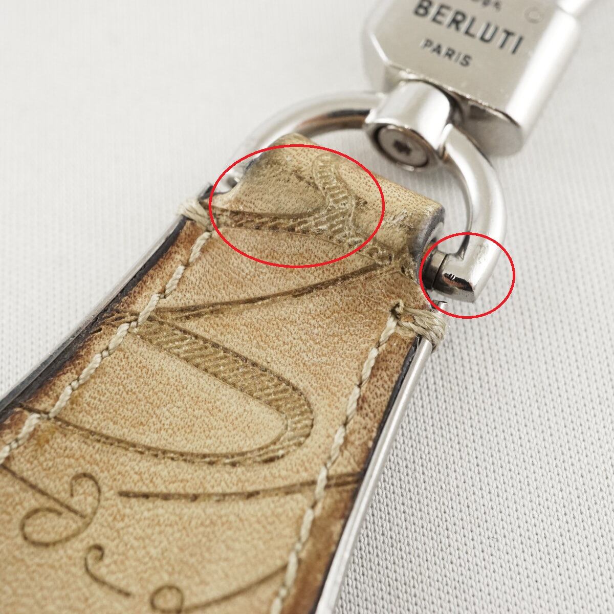 Berluti ベルルッティ USED品 メンズ ブランド 靴べら フルスクリットレザー シューホーン キーリング ベージュ シルバー金具 X8033